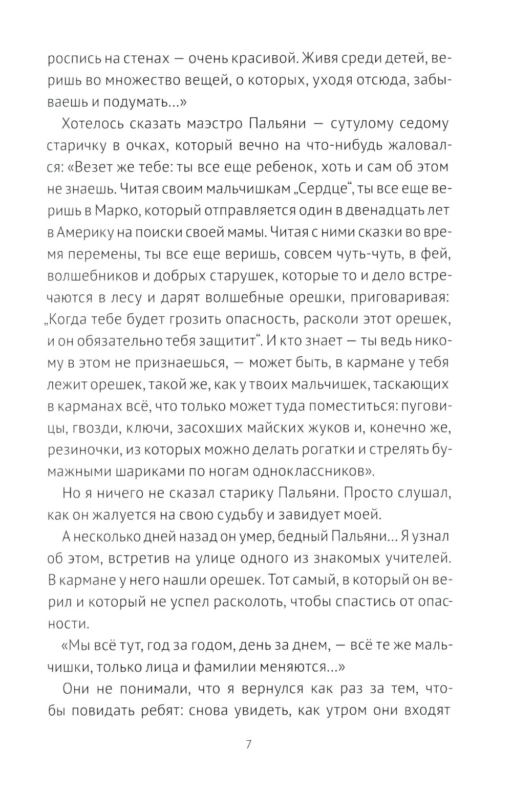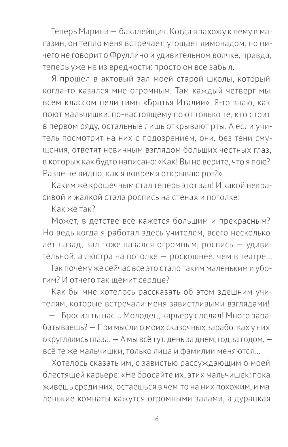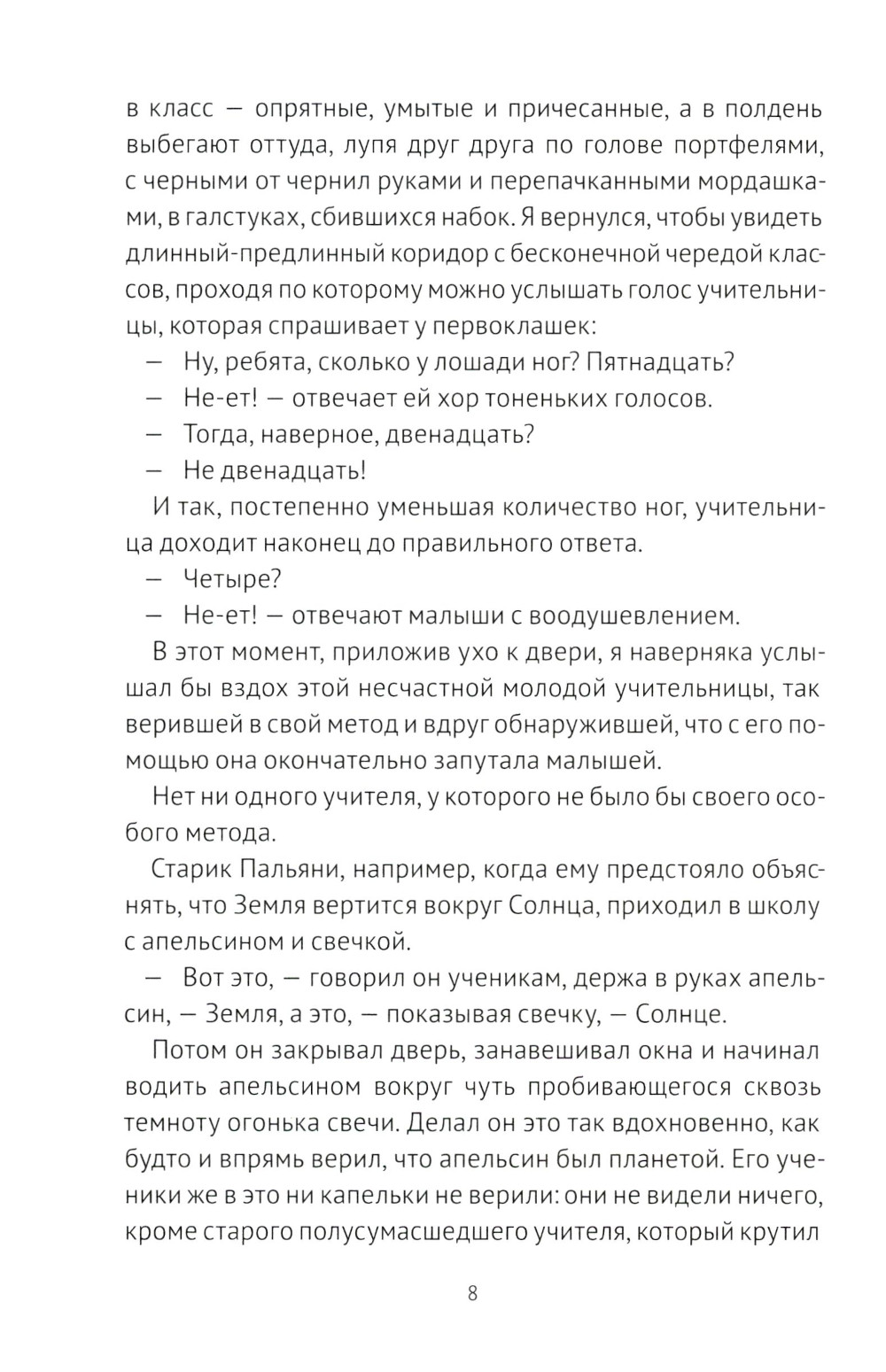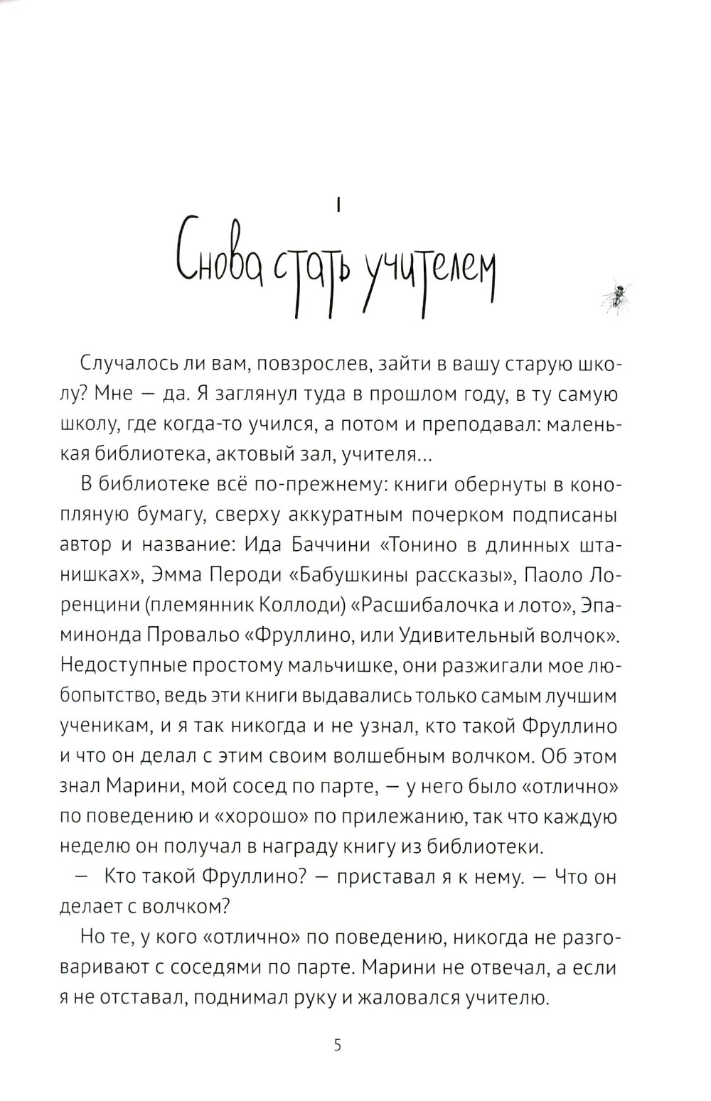 Для десятилетнего мальчишки все дни - прекрасны! В понедельник ты наблюдал за порхающими в небе ласточками и думал, едят ли они шоколад, - это жутко загадочно. Во вторник ты поймал огромную цикаду и послушал, как она стрекочет, - это дико интересно. В среду... Наверняка это был прекрасный день! Если что-то его и омрачило, так это школа. Хотя, возможно, тебе повезло и для тебя школа каждый будний день -в радость. Тебе просто достались отличные учителя - как Джованни Моска, автор этой книги. Итальянский писатель и журналист вспоминает и свое детство, и опыт преподавания в 4-5-м классах. Его заметки - это одновременно и художественный текст, и дневниковые записи. Он не всегда последователен в изложении событий, но предельно точен и правдив. «КомпасГид» переиздает книгу в серии «Избранное». Несмотря на то, что учеником автор был в 1910-е, учителем - в 1930-е, а сейчас на дворе XXI век, его школьные зарисовки современны и увлекательны. А историю про зеленую муху можно легко посмотреть в киножурнале «Ералаш». В поучительных и трогательных рассказах читатели среднего школьного возраста узнают самих себя, а взрослые заметят разные педагогические хитрости. И все, несомненно, оценят обаятельные иллюстрации художника Виктора Минеева.