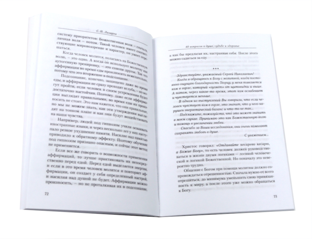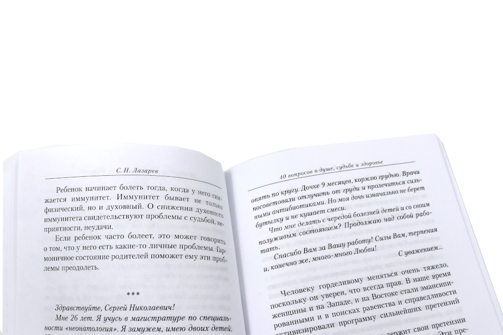 Комплект состоит из двух частей С.Н. Лазарева «40 вопросов о душе». Как преодолеть бесплодие? Почему мужчины пьют? Что значит - жить чувствами? В каком состоянии можно обращаться к Богу, а в каком - нежелательно? Что такое недолюбленный ребенок? Как отличить любовь от страсти? Как правильно помогать людям? .В этой книге читатель найдет не только ответы на многие вопросы, но и руководство к действию. Вторая книга новой серии «40 вопросов о душе, судьбе и здоровье» продолжает знакомить читателей с ответами С.Н. Лазарева на многочисленные вопросы, касающиеся самых важных сфер жизни человека. В новой книге представлены такие темы как здоровье, семья и отношения, а также многие другие актуальные темы: виртуальное общение в Интернете, проявление сверхспособностей, особенности правильного питания и многие другие темы, которые будут интересны широкому кругу читателей. Отдельная глава книги посвящена теме молитвы. Проблемы людей похожи, но каждая история, рассказанная в письмах, индивидуальна и имеет свои особенности. И через объяснение этих особенностей, через раскрытие нюансов и подробностей, которыми делится Сергей Николаевич в своих ответах, читатели смогут найти для себя новые знания для решения собственных проблем.| Издательство | ИП Лазарев С.Н. |