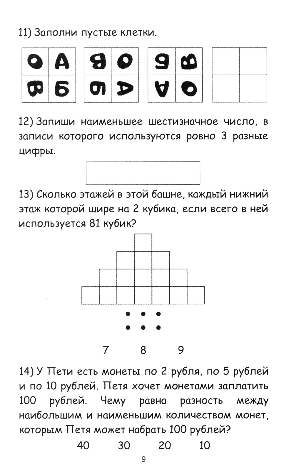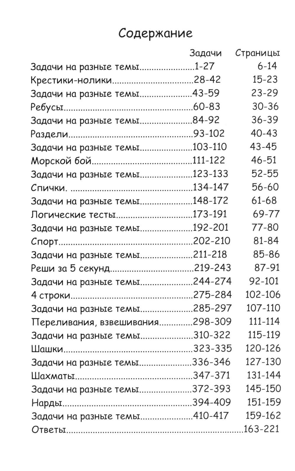 В книге собраны как задачи, которые помогут подготовиться к математическим олимпиадам, так и большое количество заданий, развивающих логическое мышление, да и просто интересных. Крестики-нолики, морской бой, шашки, шахматы, нарды, ребусы и задачи со спичками, логические тесты - далеко не все темы, которые можно встретить на страницах этой книги. Рассчитана на детей 9-13 лет и взрослых, желающих поддержать свой интеллектуальный тонус.| Издательство | Проспект |