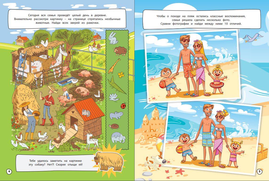 45 игр, лабиринтов, находилок с весёлой семейкой