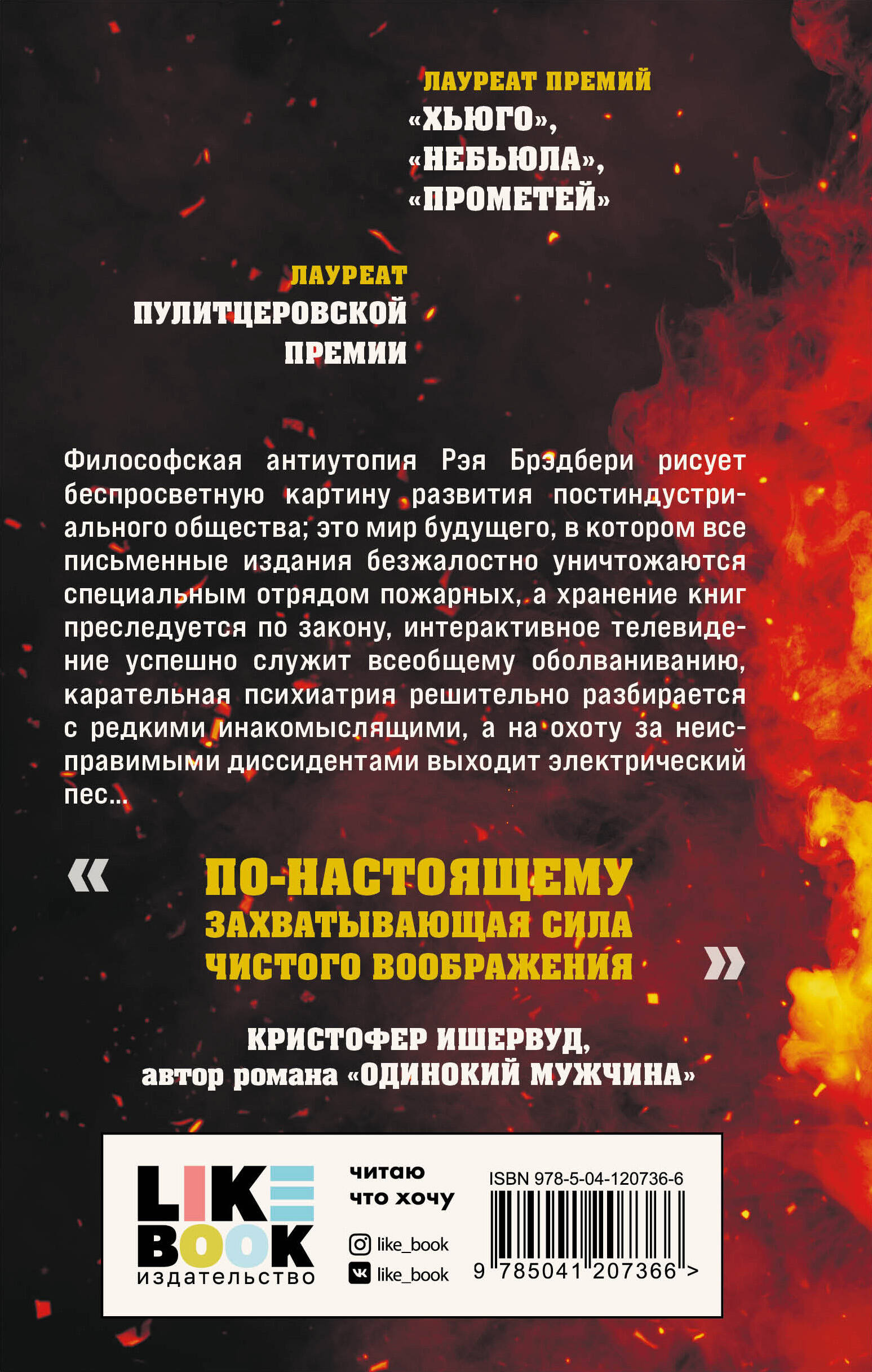 «451 градус по Фаренгейту» - один из величайших романов всех времен, классика научной фантастики. Эта книга получила награду Американской академии искусств и литературы, премию «Хьюго», вошла в список 100 лучших романов XX века, дважды была экранизирована (в 1966 и 2018 годах). Популярность романа оказала огромное влияние на творчество многих музыкальных групп, кинорежиссеров, авторов комиксов и создателей компьютерных игр.| Издательство | ООО "Издательство "Эксмо" |