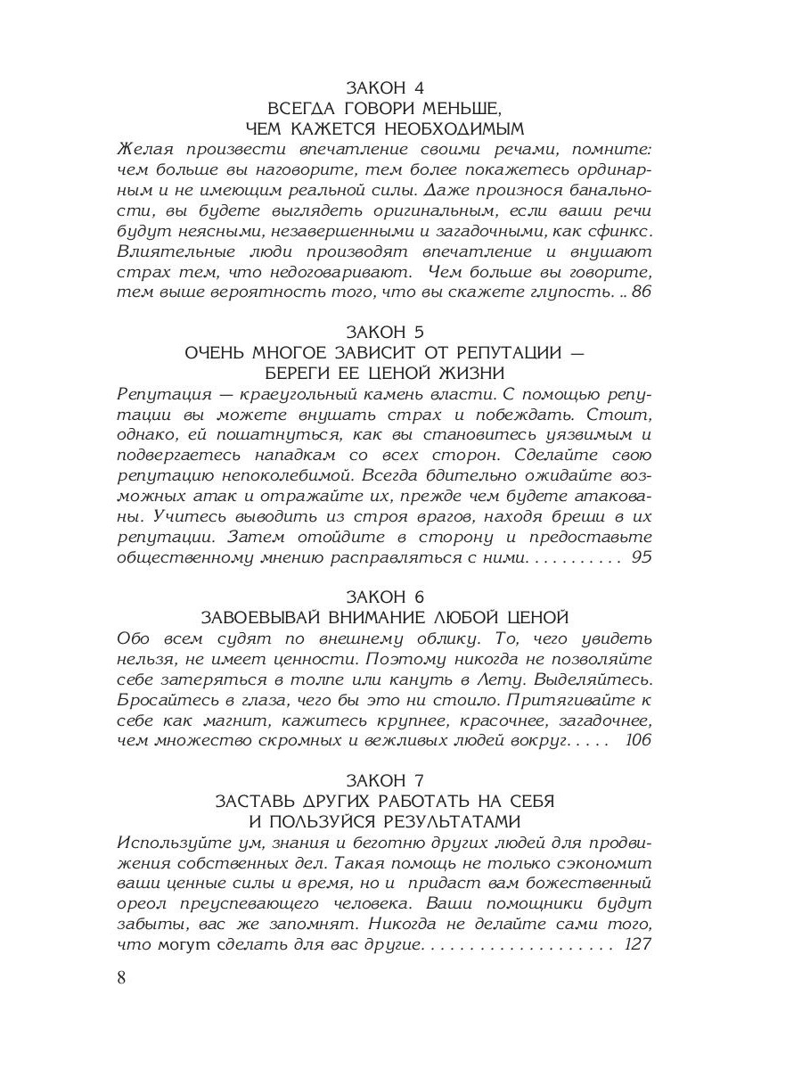 Это самая аморальная, самая скандальная, самая циничная... и самая правдивая книга о власти, начиная с незамысловатой, бытовой и кончая президентской. Отныне, познав блестяще сформулированные и подкрепленные интереснейшими и неожиданными историческими факторами жесткие и жестокие законы поведения во власти, вы без труда распознаете то, что стоит за теми или иными словами и поступками «маленьких» начальников и сильных мира сего, то, что так тщательно они пытаются скрыть. «48 законов власти» - настольная книга для тех, кто желает освоить науку управления людьми, безошибочно использовать их слабости для достижения собственного могущества.| Издательство | Рипол Классик |