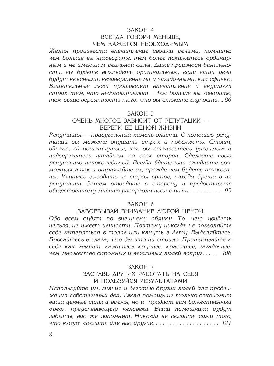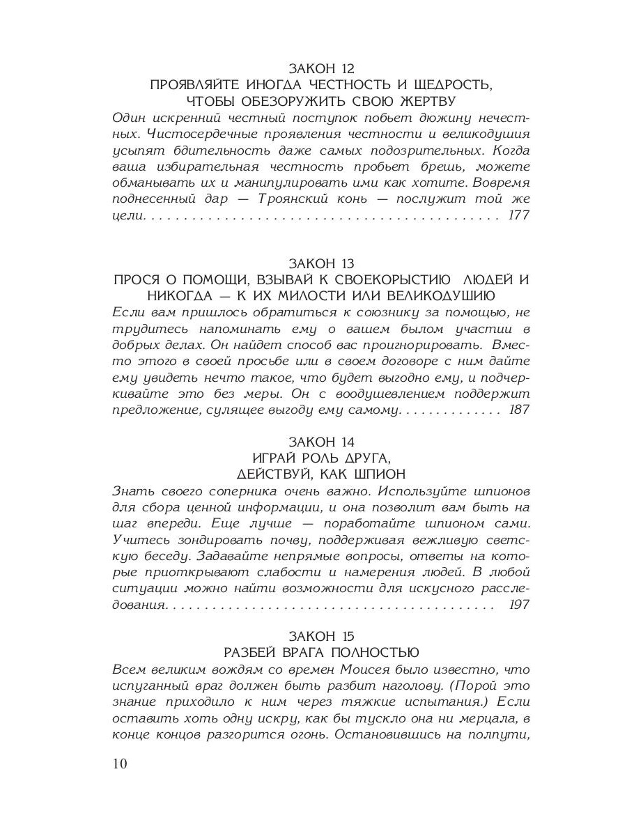 Это самая аморальная, самая скандальная, самая циничная... и самая правдивая книга о власти, начиная с незамысловатой, бытовой и кончая президентской. Отныне, познав блестяще сформулированные и подкрепленные интереснейшими и неожиданными историческими факторами жесткие и жестокие законы поведения во власти, вы без труда распознаете то, что стоит за теми или иными словами и поступками «маленьких» начальников и сильных мира сего, то, что так тщательно они пытаются скрыть. «48 законов власти» - настольная книга для тех, кто желает освоить науку управления людьми, безошибочно использовать их слабости для достижения собственного могущества.| Издательство | Рипол Классик |