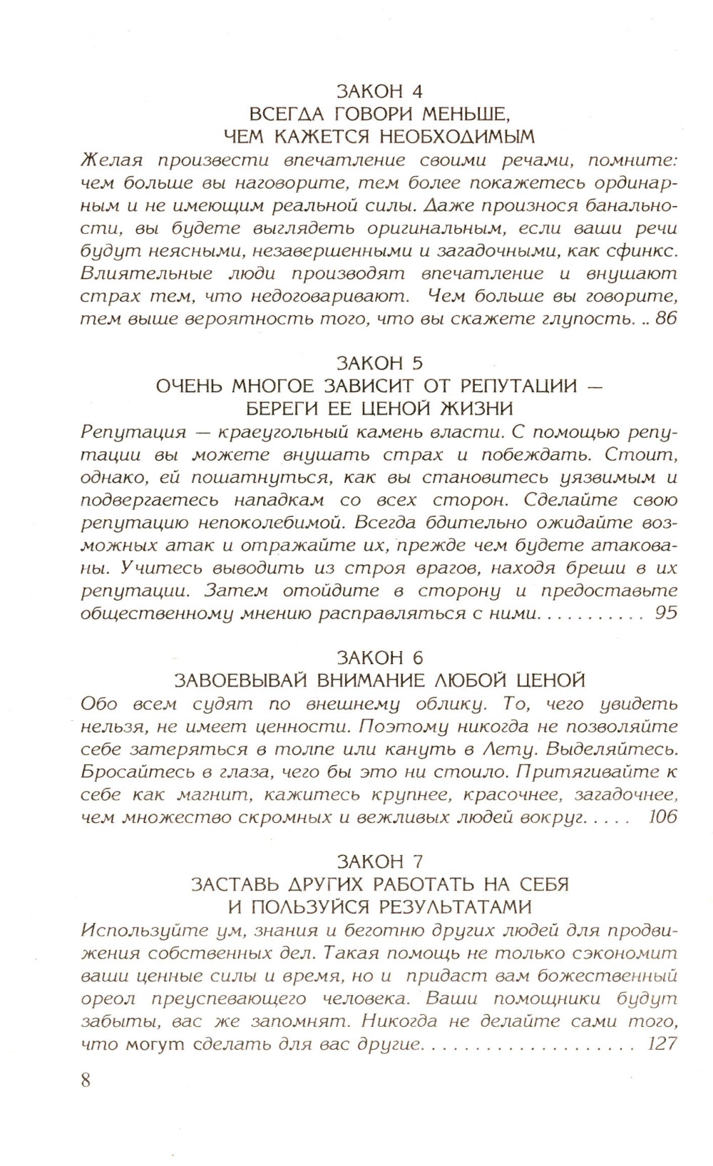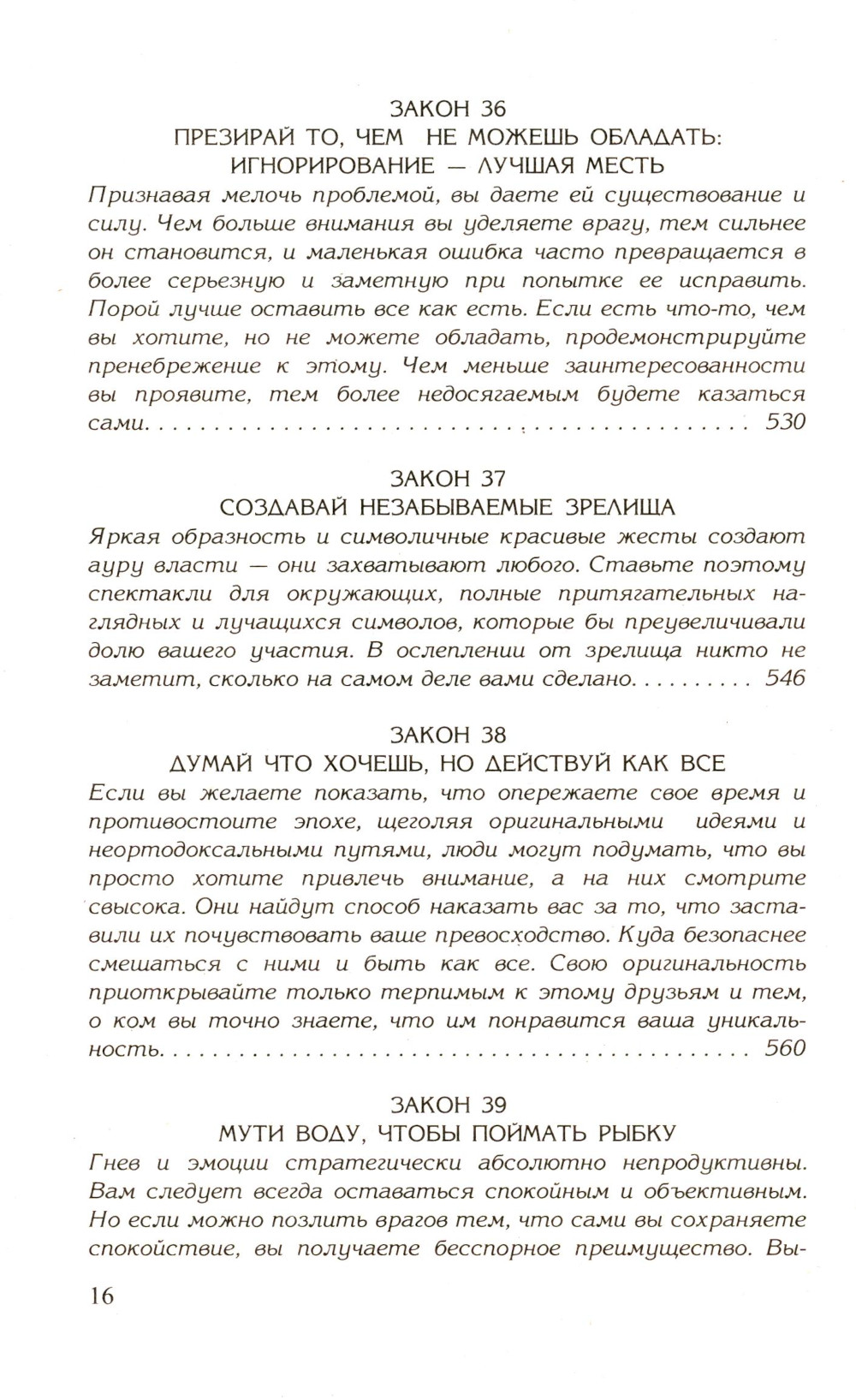 Комплект из трех книг Роберта Грина. «48 законв власти» Это самая аморальная, самая скандальная, самая циничная... и самая правдивая книга о власти, начиная с незамысловатой, бытовой и кончая президентской. Отныне, познав блестяще сформулированные и подкрепленные интереснейшими и неожиданными историческими факторами жесткие и жестокие законы поведения во власти, вы без труда распознаете то, что стоит за теми или иными словами и поступками «маленьких» начальников и сильных мира сего, то, что так тщательно они пытаются скрыть. «48 законов власти» - настольная книга для тех, кто желает освоить науку управления людьми, безошибочно использовать их слабости для достижения собственного могущества. «24 законов обольщения» Обольщение - это один из мощных инструментов бизнес-стратегий, который помогает завоевывать доверие и переманивать врагов на свою сторону. Узнайте механизм действия обаяния и шарма. Легко и непринужденно вы добьетесь успеха в работе и личной жизни, следуя законам обольщения Роберта Грина. «33 стратегии войны» Будь проще, будь туманнее. Создавай свой культ расплывчатой привлекательности. Придавай особое значение эмоциям, в противовес интеллекту. Не пугай людей скукой и скептицизмом. Взывай к чувствам. Придай своей группе структуру религиозной организации. Создавай ритуалы для своих сторонников. Присваивай им имена и титулы, требуй от них жертв. Веди за собой людей. Будь успешен и самодостаточен. Пусть последователи верят, что власть пришла к тебе в результате истинности твоих идей и методов. Будь готов к операции «Кто не с нами, тот против нас». Да, это цинично... Да, это аморально... Но речь идет о том, как завоевать и удерживать власть. Нужно быть прагматичным и эффективным. Стань таким.| Издательство | Рипол Классик |