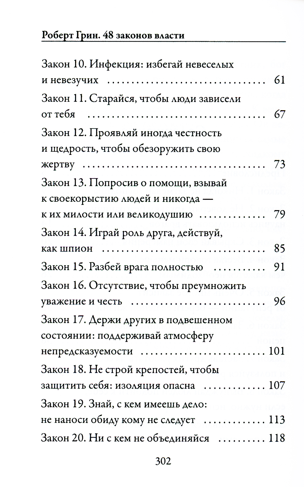 Это самая аморальная, скандальная, циничная... и правдивая книга о власти. Отныне, познав ее жесткие и жестокие законы, вы без труда распознаете то, что стоит за теми или иными словами и поступками «маленьких» начальников и сильных мира сего, то, что так тщательно они пытаются скрыть. Роберт Грин - американский автор литературы о психологии и механизме функционирования власти в обществе и политике, а также об особенностях стратегического мышления и законах обольщения. «48 законов власти» - настольная книга для тех, кто желает освоить науку управления людьми, безошибочно использовать их слабости для достижения собственного могущества.| Издательство | Рипол Классик |