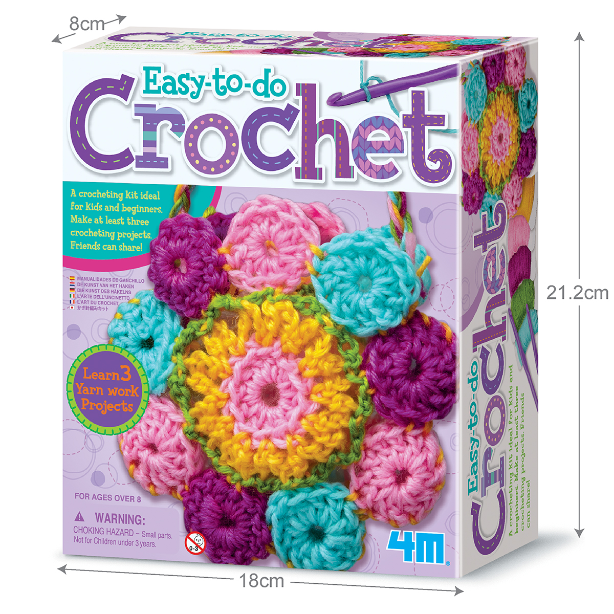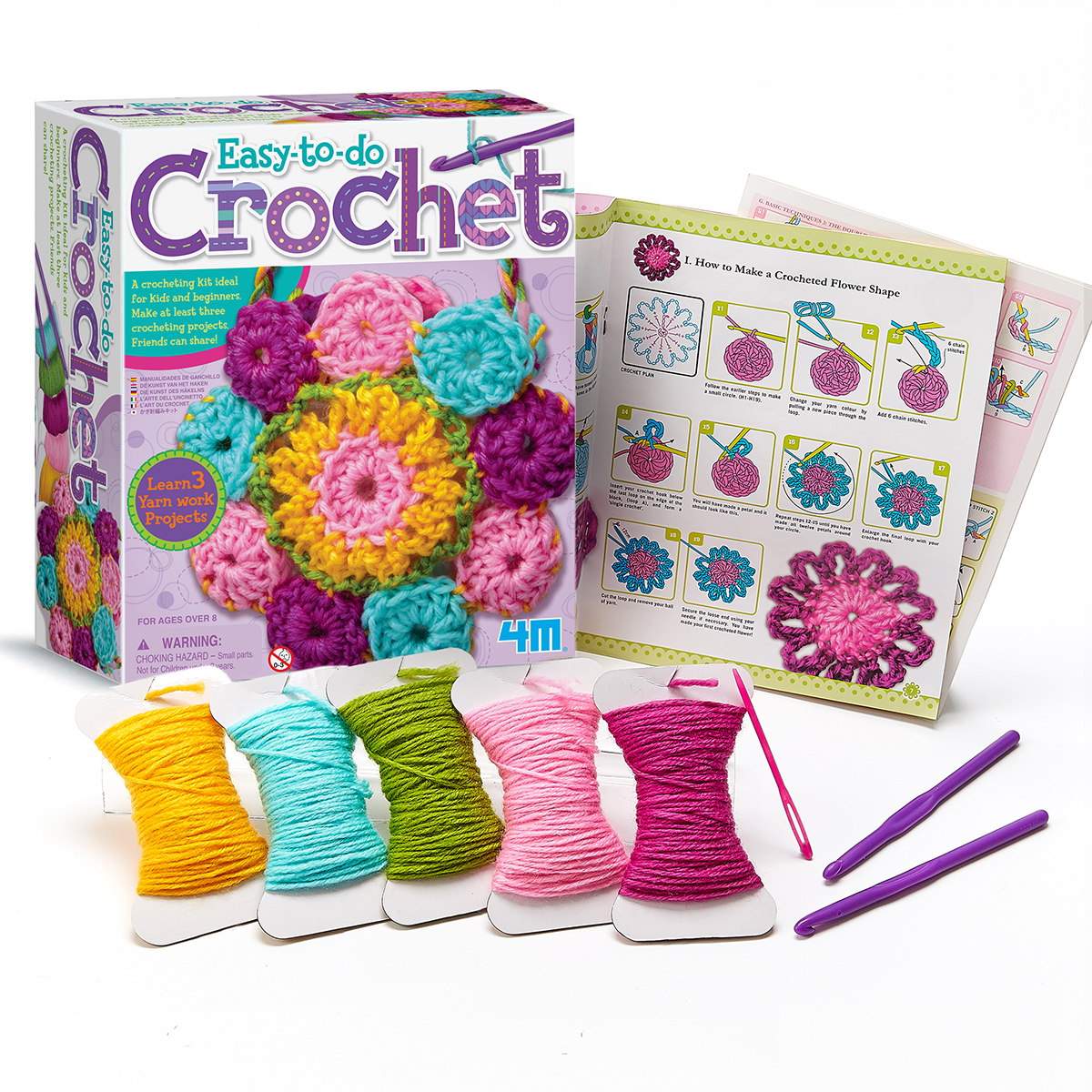Набор для творчества 4M Вязание крючком. В наборе есть все необходимое для того, чтобы маленькая рукодельница связала 3 разные вещи - подставку для чашки, салфетку и сумочку. Изделия можно оставить себе или подарить родным и друзьям. Работа с крючком поможет развить не только творческие навыки, но и мелкую моторику рук, внимательность, эмоциональное благополучие. Можно работать дома или использовать его на мастер классах, уроках трудового обучения в центрах развития и школах.