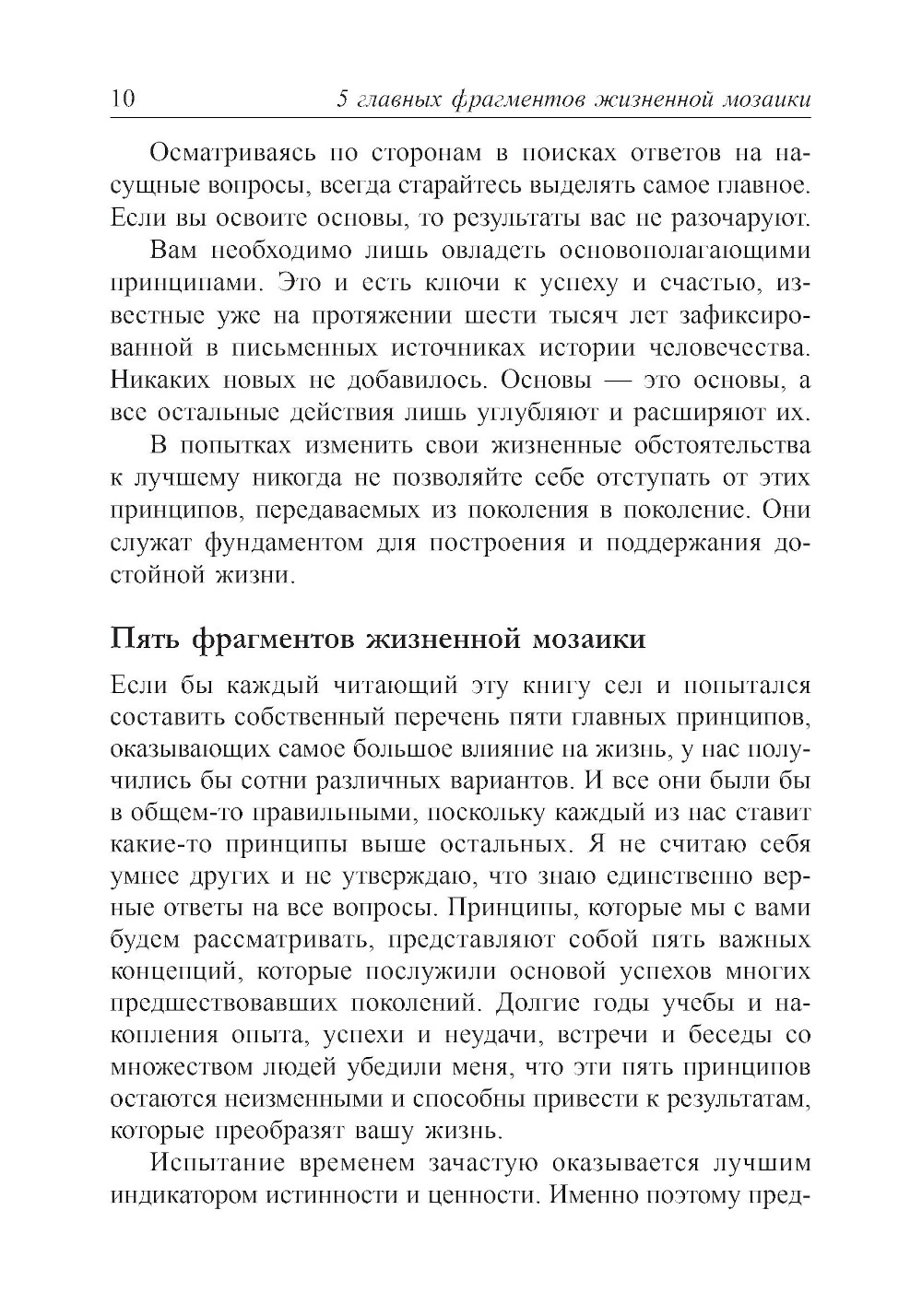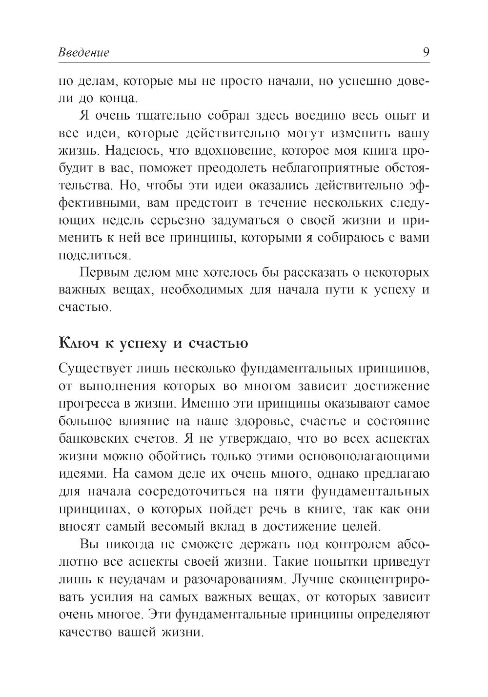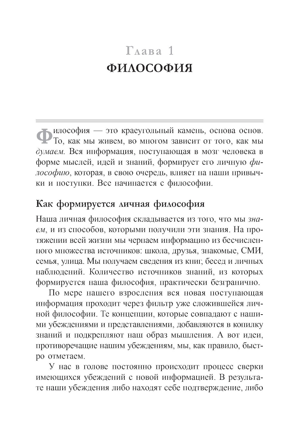 Эта книга познакомит вас с действительно работающей формулой достижения успеха. Она посвящена фундаментальным принципам, овладев которыми вы сможете добиться прогресса и процветания. Изложенные здесь идеи несут уверенность сомневающимся, надежду разочарованным, ободрение тем, кого угнетает сложность современной жизни. Теперь в вашем распоряжении есть тщательно подобранные и продуманные слова одного из величайших наставников ХХ века. Если вы будете готовы воспринять и осознать их, для вас начнется путешествие к новой радостной жизни.