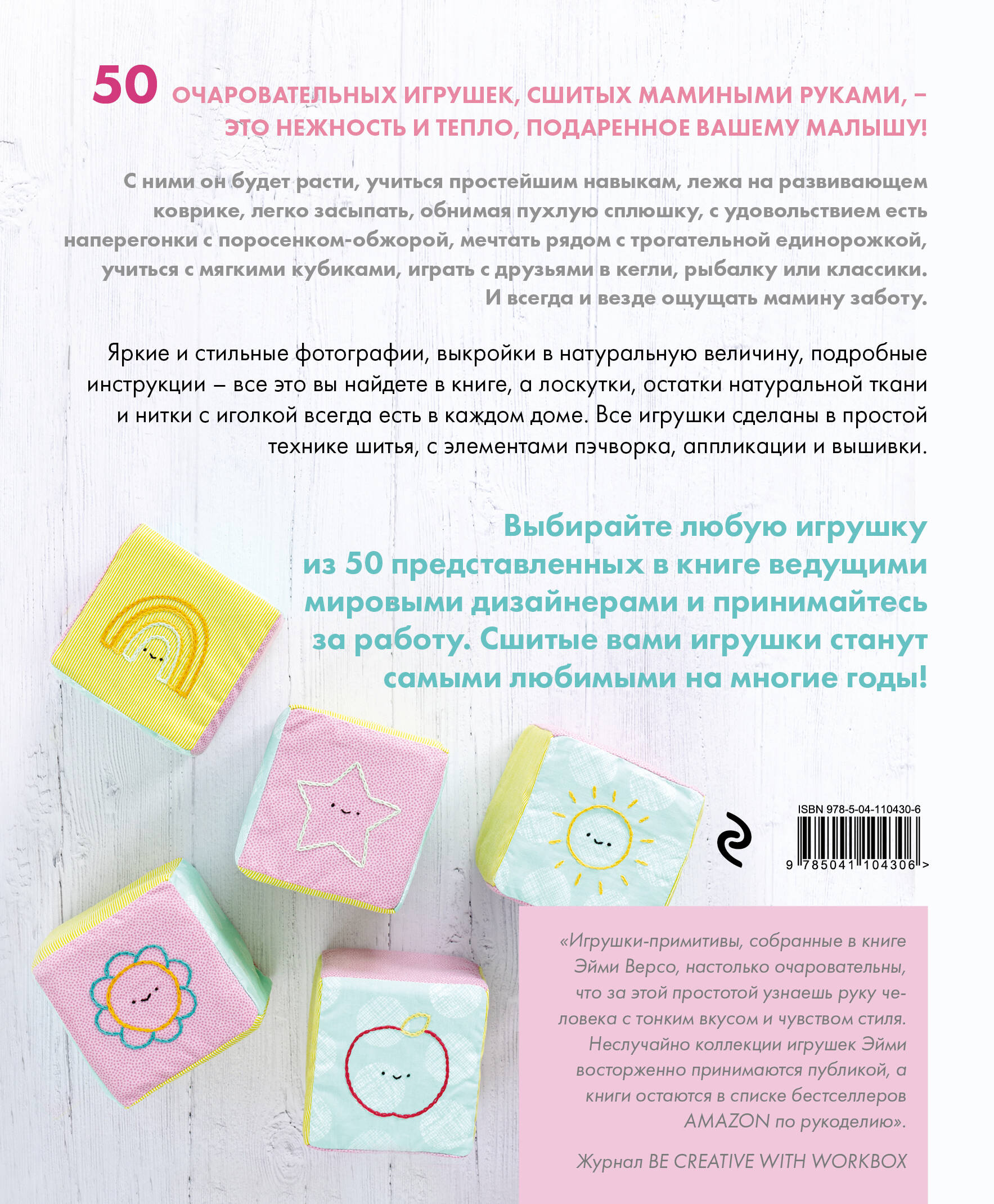 Яркие, красивые, мягкие, теплые, экологичные! Все игрушки, представленные в этой красивой книге, отвечают самым важным родительским требованиям! Сшить их сможет любая мама или бабушка, даже обладающая минимальными навыками, достаточно найти в доме несколько лоскутков подходящей расцветки и хоть немного уметь шить. Ребенок ни за что не расстанется с милым Мишкой, очаровательной единорожкой, уютными сплюшками, с удовольствием соберет мягкую пирамидку, а подрастая, будет увлеченно играть в сшитые своими руками крестики-нолики! Выкройки в натуральную величину, яркие иллюстрации, пошаговое описание работы. Книга-находка для любящих мам и бабушек!| Издательство | ООО "Издательство "Эксмо" |