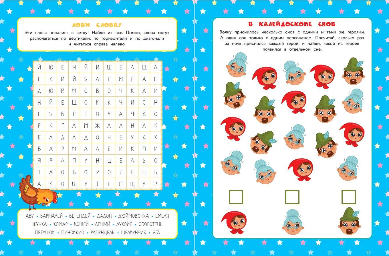 Приоткрой дверь в сказочный мир! Жизнь сказочных героев полна забавных приключений - присоединяйся! Без тебя им не справиться - помогай проходить лабиринты, искать отличия, находить лишнее, разгадывать судоку, искать потерявшиеся слова, подбирать недостающие детали пазлов и многое-многое другое. В книге собраны самые интересные и полезные головоломки - время в сказочном царстве пролетит весело, а ты прокачаешь свой мозг и полезные навыки - станешь супервнимательным и сообразительным героем. А ещё ты на славу повеселишься! Не время скучать - скорее открывай сборник головоломок и присоединяйся к незабываемым приключениям где угодно - книжку очень удобно носить собой. В сборнике собрались самые смелые и очаровательные герои, а яркие полноразмерные иллюстрации позволят без остатка погрузиться в незабываемые приключения вместе с любимыми сказочными героями!| Издательство | ООО "Издательство "Эксмо" |
