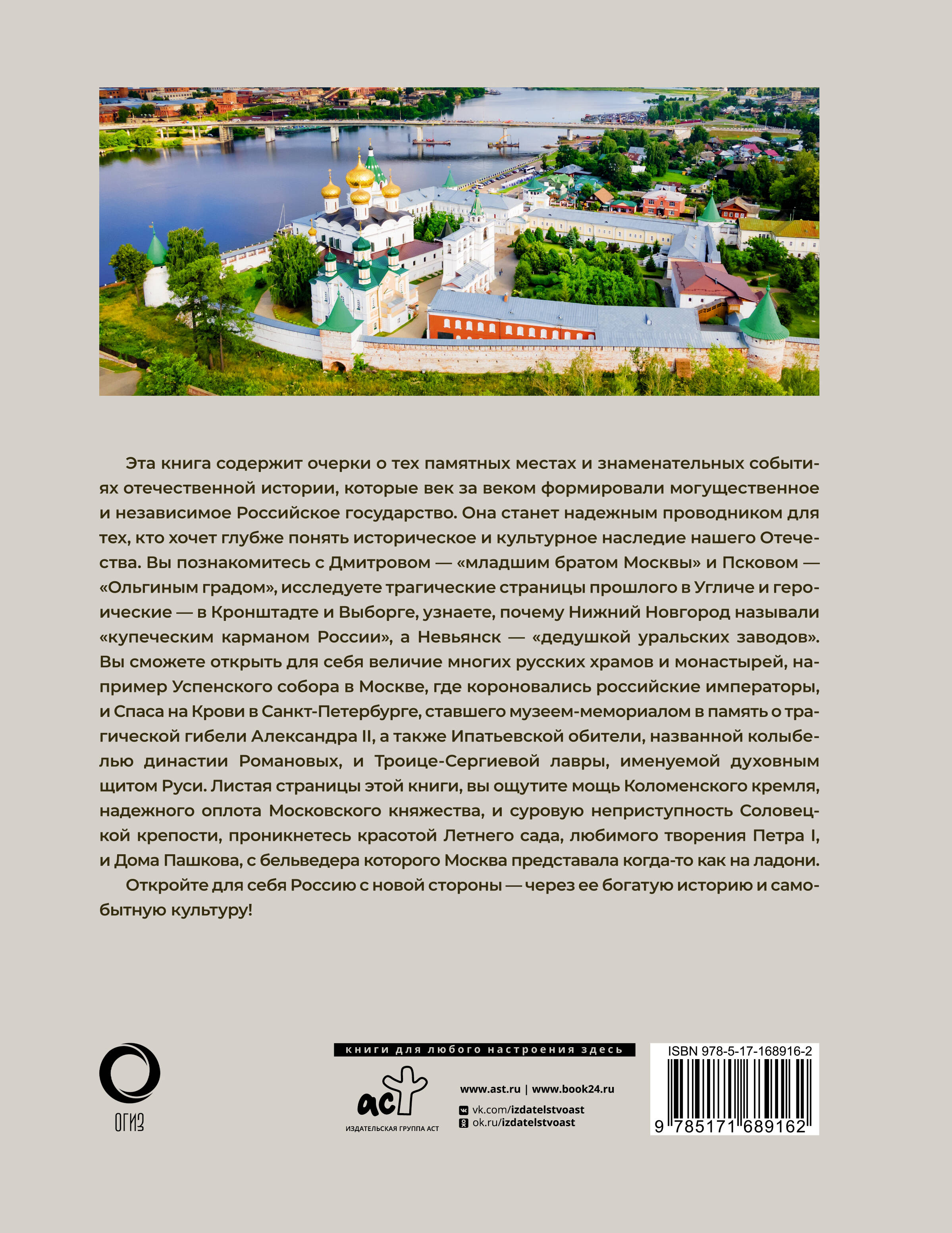 Эта книга содержит очерки о тех памятных местах и знаменательных событиях отечественной истории, которые век за веком формировали могущественное и независимое Российское государство. Она станет надежным проводником для тех, кто хочет глубже понять историческое и культурное наследие нашего Отечества. Вы познакомитесь с Дмитровом - "младшим братом Москвы" и Псковом - "Ольгиным градом", исследуете трагические страницы прошлого в Угличе и героические в Кронштадте и Выборге, узнаете, почему Нижний Новгород называли "купеческим карманом России", а Невьянск - "дедушкой уральских заводов". Вы сможете открыть для себя величие многих русских храмов и монастырей, например, Успенского собора в Москве, где короновались российские императоры, и Спаса на Крови в Санкт-Петербурге, ставшего музеем-памятником в честь трагической гибели Александра II, а также Ипатьевской обители, названной колыбелью династии Романовых, и Троице-Сергиевой лавры, именуемой духовным щитом Руси. Листая страницы этой книги, вы ощутите мощь Коломенского кремля, надежного оплота Московского княжества, и суровую неприступность Соловецкой крепости, проникнетесь красотой Летнего сада, любимого творения Петра I, и дома Пашкова, с бельведера которого Москва представала когда-то как на ладони. Откройте для себя Россию с новой стороны - через ее богатую историю и самобытную культуру!| Издательство | Издательство "АСТ" |