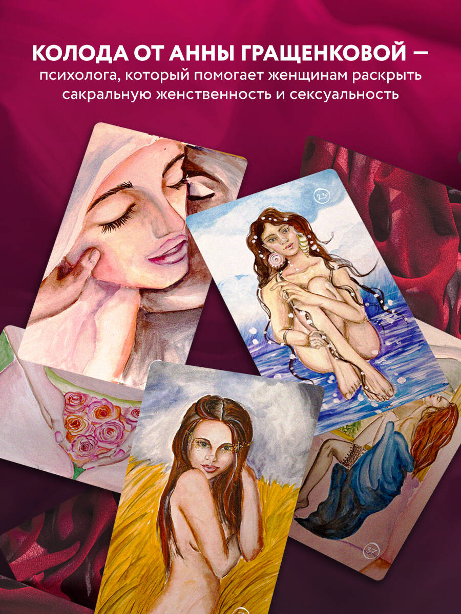 Авторская колода метафорических карт Анны Гращенковой станет незаменимой для тех, кто хочет раскрыть и усилить свою женскую силу, а также развить свою женственность и сексуальность. Карты помогут вам стать более раскрепощенной и расскажут, как услышать голос своего подсознания и понять свои потребности, включить свою энергию притяжения, а также научиться принимать свое тело и получать от него удовольствие. Колода состоит из 50 карт. К ней прилагается руководство по использованию, которое поможет познакомиться с картами и начать работу с ними. Анна Гращенкова - психолог, который помогает раскрыть вашу сакральную женственность и сексуальность. С помощью ее авторской колоды карт вы сможете почувствовать себя умиротворенной, гармоничной и манящей, познаете истинную себя и привлечете в свою жизнь все желаемые обстоятельства.| Издательство | ООО "Издательство "Эксмо" |