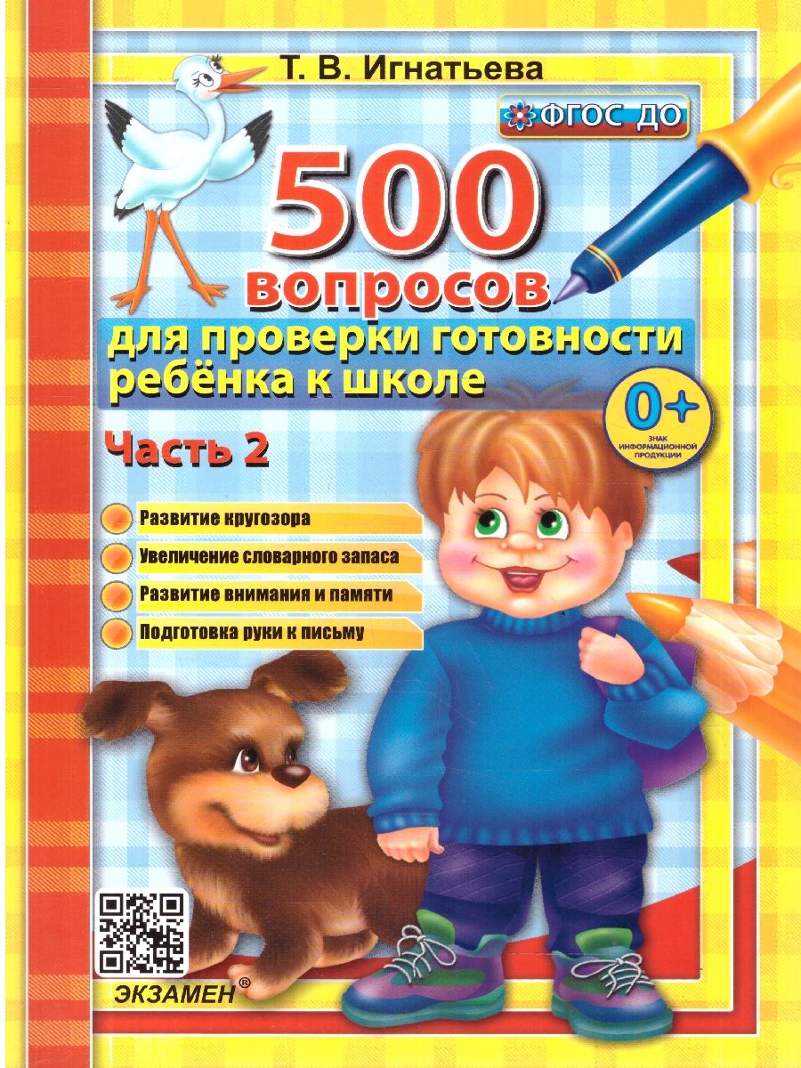 500 ВОПРОСОВ ДЛЯ ПРОВЕРКИ ГОТОВНОСТИ РЕБЕНКА К ШКОЛЕ Ч.2. ФГОС ДО