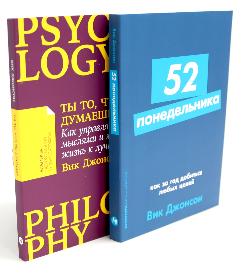 Комплект состоит из двух книг Вика Джонсона: «52 понедельника» и «Ты то, что ты думаешь». О книге «52 понедельника»: Один год. Много это или мало? И что можно сделать за каких-то 365 дней или 52 недели? По мнению Вика Джонсона, за это время успеть можно очень многое, если поставить себе цель и неуклонно продвигаться к ней. Правда, есть несколько секретов, и автор охотно знакомит с ними читателя, рассказывая, как неделя за неделей добиваться исполнения своей мечты. Конечно, не так уж просто посвятить год жизни достижению желаемого; это решение ответственное и потребует от вас массы терпения. Но если вы сильны духом, настойчивы, прилежны и добросовестны, считайте, что мир у вас в кармане! Главное - не сдаваться и шаг за шагом, неделя за неделей двигаться к своей цели. О книге «Ты то, что ты думаешь»: Когда случаются неприятности, мы задумываемся о самых страшных последствиях и вскоре чувствуем отчаяние. В таком состоянии справиться с трудностями намного сложнее, ведь наше подсознание аккумулирует негативный опыт. Помните, что мы сами хозяева своей жизни, а значит, счастье или несчастье - не итог стечения обстоятельств, а результат нашего выбора. Известный специалист по саморазвитию, автор бестселлера «52 понедельника» Вик Джонсон утверждает: «Ты то, что ты думаешь», а значит, изменив образ мышления, можно поменять многие аспекты своей жизни. Например, наконец заняться спортом в удовольствие, а не принуждая себя, или решиться на глобальные перемены - переезд или смену работы. На страницах этой книги вы найдете не только тонкие наблюдения о связи мышления с нашими мечтами, успехами и неудачами, но и практические советы и упражнения, которые помогут настроить подсознание на новую, счастливую жизнь.| Издательство | Альпина Паблишер |