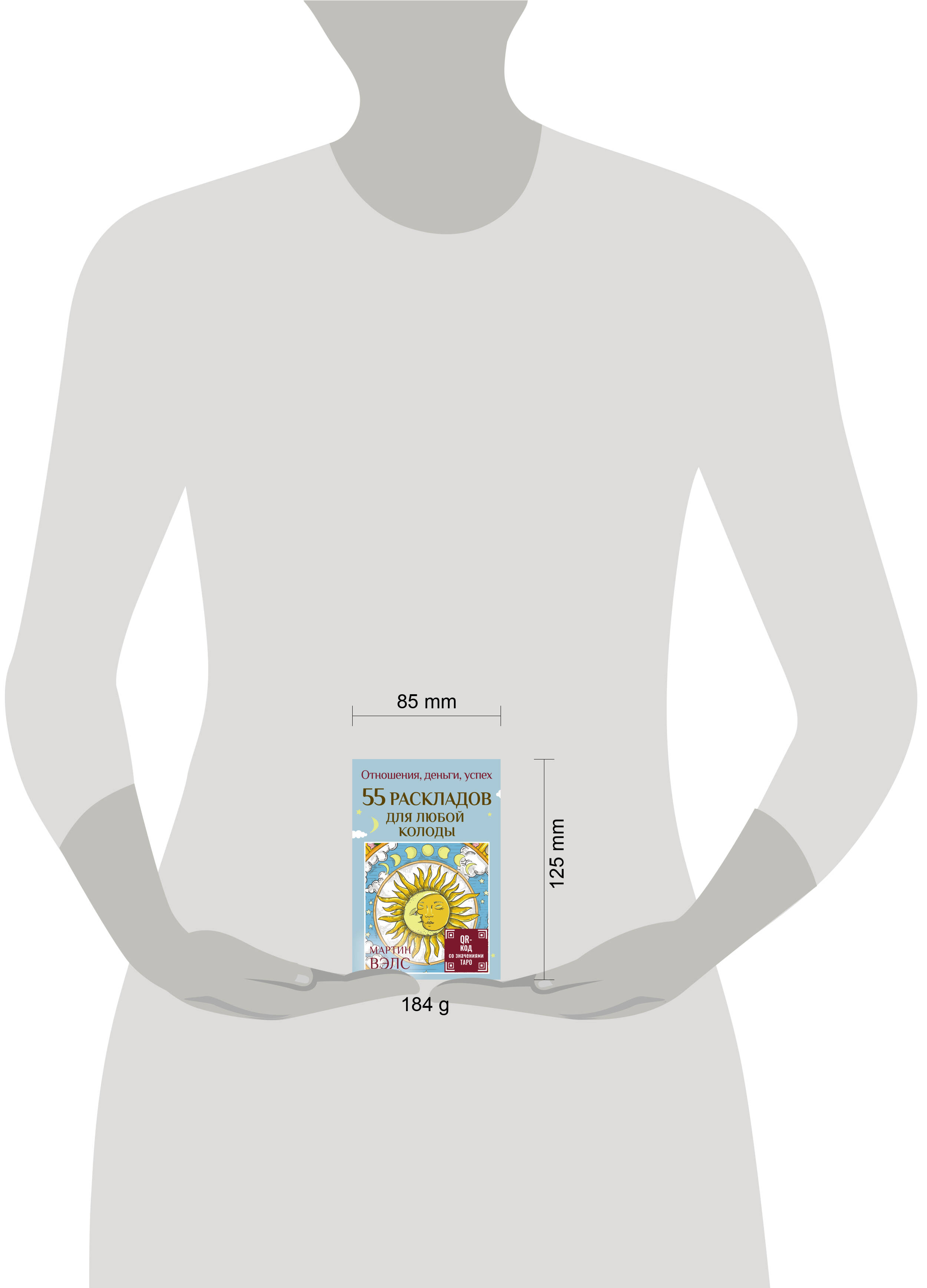 В ваших руках уникальная колода с раскладами! Отличный вариант для тех, что хочет обучиться Таро и продолжить с ним работать. Каждый расклад расположен на отдельной карте, всего их 55. На одной стороне - схема расклада, а на другой - его расшифровка. Смотреть расклады в книгах неудобно, потому что приходится одной рукой удерживать страницы, а другой доставать карты. Самая главная особенность этой колоды - простота использования. Работать с ней очень легко: выбираете любую карту с раскладом (или даете Вселенной выбрать за вас), кладете ее перед собой и раскладываете Арканы по схеме. Тематика раскладов абсолютно разная: любовь, финансы, работа, успех. Есть простые схемы для быстрого ответа и более сложные для глубоких вопросов. По своему применению колода достаточно универсальная: расклады можно использовать также с МАК и Оракулами. Колода подходит как для начинающих, которые только ступили на путь изучения Таро, так и для профессионалов, которые хотят освежить свои знания раскладов и узнать что-то новое. В комплект входит карта с QR-кодом, который ведет на руководство с подробными значениями Старших и Младших Арканов.| Издательство | Издательство "АСТ" |