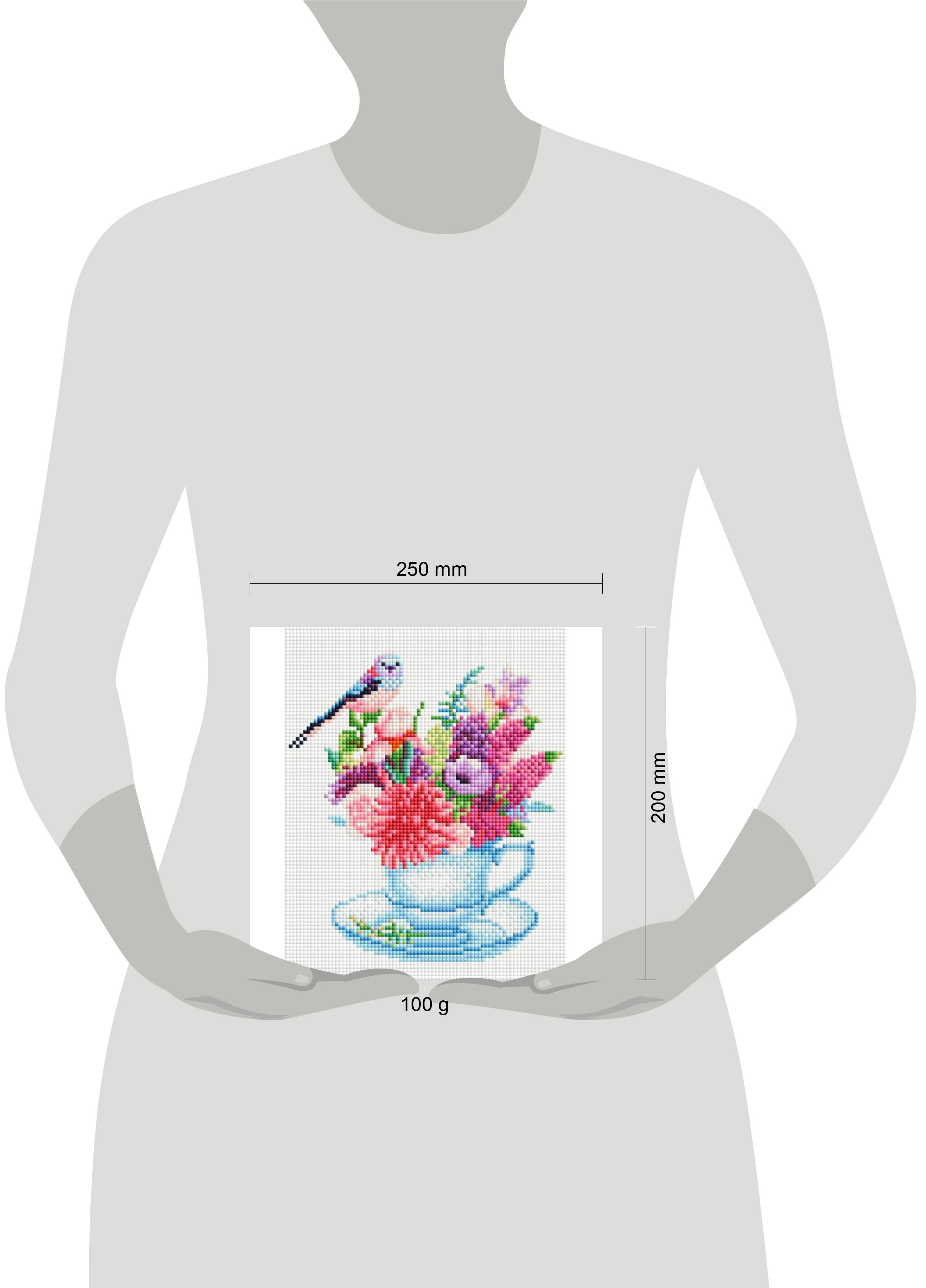 Алмазная мозаика на раме "Белоснежка", это набор для творчества из которого получится красивая переливающаяся картина. Цветочная композиция с птичкой разработана для мозаики по мотивам картины Татьяны Митрушовой. Основой картины служит холст, натянутый на подрамник. Для придания крепости конструкции подрамник дополнительно усилен листом оргалита. На холст нанесена цветная схема с контрастными условными обозначениями, схему покрывает высококачественный клеевой слой, сверху слой закрыт пленкой, которая предотвращает высыхание клея. Комплект квадратных искусственных камней расфасован по цветам в отдельные пакеты, на каждом пакете есть наклейка с номером цвета и условным обозначением. В набор так же входят специальный металлический пинцет и пластмассовый лоток для акриловых камней с низкими бортиками. Для придания завершенности композиции готовую картину можно оформить в багетную раму. Комплектация: • основа картины - холст с нанесенной схемой на подрамнике; • комплект квадратных камней с огранкой 2,5 × 2,5 мм; • пластмассовый лоток с ячейками; • пинцет металлический; • крепления для подвеса на стену; • дополнительный тюбик клея.| Издательство | Баскаков Павел Владимирович ИП |