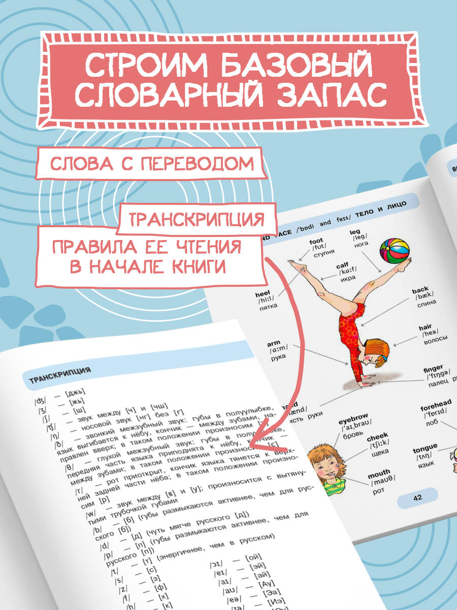 С чего начать, чтобы привить ребенку интерес к английскому языку? Уж конечно, не с грамматики! Начните со знакомства с английскими словами! С помощью этой книги ученик запомнит более 600 английских слов по 35 темам, которые облегчат изучение языка в школе. Рассматривая красочные иллюстрации, ребенок вслед за вами начнет называть их по-английски. Произношение передано английской транскрипцией, а в начале книги приводятся правила ее чтения. Заглядывая в них, вы вместе с ребенком освоите правила чтения транскрипции, что очень пригодится при дальнейшем изучении английского языка. Полезные слова, красочные иллюстрации, нескучные занятия и отличный результат!| Издательство | ООО "Издательство "Эксмо" |