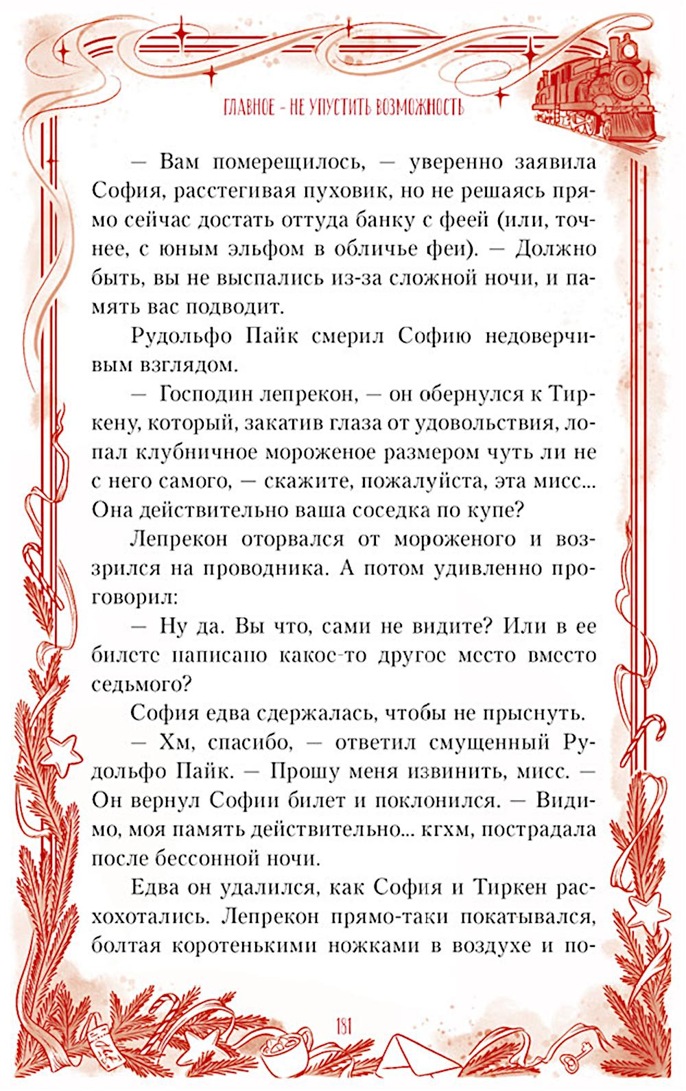 Билет на «Арктик-экспресс» попал в руки Софии совершенно случайно. Она и не подозревала, что этот поезд отправляется в мир, где воплощаются мечты, а под видом пассажиров скрываются существа из древних легенд и преданий. До исполнения ее самого заветного желания всего семь зачарованных станций! Вот только обыкновенным людям находиться здесь строжайше запрещено... К тому же объявился настоящий владелец билета - обаятельный эльф по имени Тео, полный решимости вернуть его любой ценой. Конечная станция маршрута на Северном полюсе уже близко, а часы вот-вот пробьют полночь... Чем обернется новогодняя сказка для Софии и Тео? И главное, претворятся ли в жизнь их сокровенные мечты?| Издательство | Клевер-Медиа-Групп |