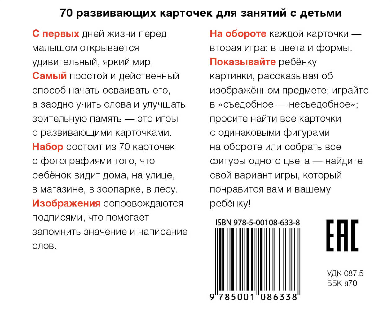 Аннотация: 70 развивающих карточек для занятий с детьми. Набор №1