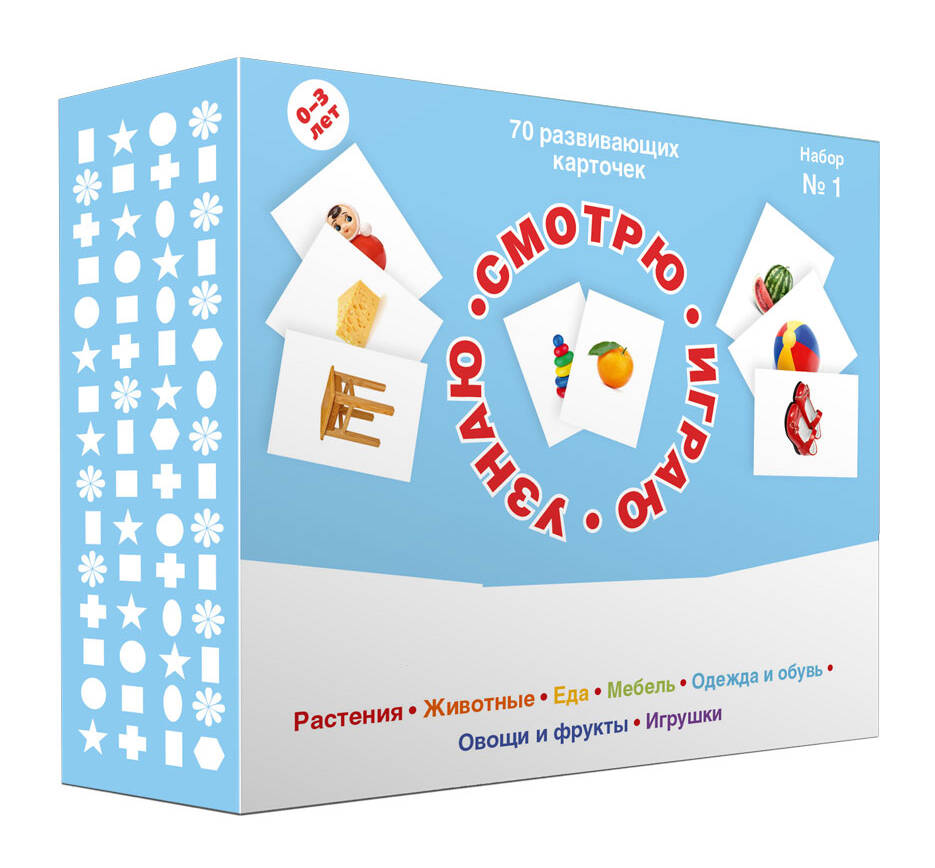 С первых дней жизни перед малышом открывается удивительный, яркий мир. Самый простой и действенный способ начать осваивать его, а заодно учить слова и улучшать зрительную память - это игры с развивающими карточками. Набор состоит из 70 карточек с фотографиями того, что ребёнок видит дома, на улице, в магазине, в зоопарке, в лесу. Изображения сопровождаются подписями, что помогает запомнить значение и написание слов. На обороте каждой карточки - вторая игра: в цвета и формы. Показывайте ребёнку картинки, рассказывая об изображённом предмете; играйте в "съедобное - несъедобное"; просите найти все карточки с одинаковыми фигурами на обороте или собрать все фигуры одного цвета - найдите свой вариант игры, который понравится вам и вашему ребёнку!| Издательство | Издательский Дом Мещерякова АО |