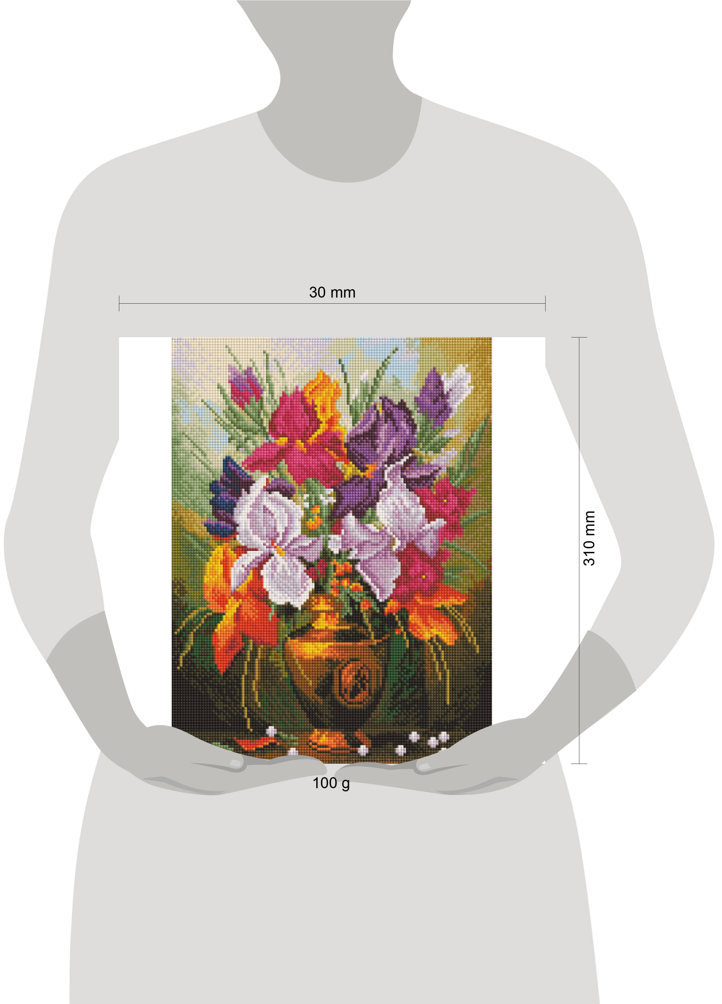 Хиты Алмазная мозаика Белоснежка размера 30*40 см. на холсте! Основа картины - холст с напечатанной цветной схемой с контрастными условными обозначениями, холст покрыт высококачественным клеевым слоем и сверху закрыт пленкой, которая предотвращает высыхание клея. В комплекте набор искусственных камней с огранкой двух типов 9 и 13 граней из композиционного полимерного материала на основе эпоксидной смолы. Камни расфасованы по цветам в пакеты с zip-застежкой, на пакете имеется наклейка с номером, цветом ячейки и условным обозначением, как на схеме. Камни оптимально размещаются в квадраты схемы, без излишних зазоров и пропусков. После завершения работы оформите картину в багетную раму для размера 30*40. Готовый блестящий шедевр будет радовать вас долгое время сияя и переливаясь гранями камней.| Издательство | Баскаков Павел Владимирович ИП |