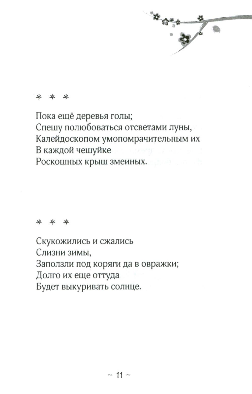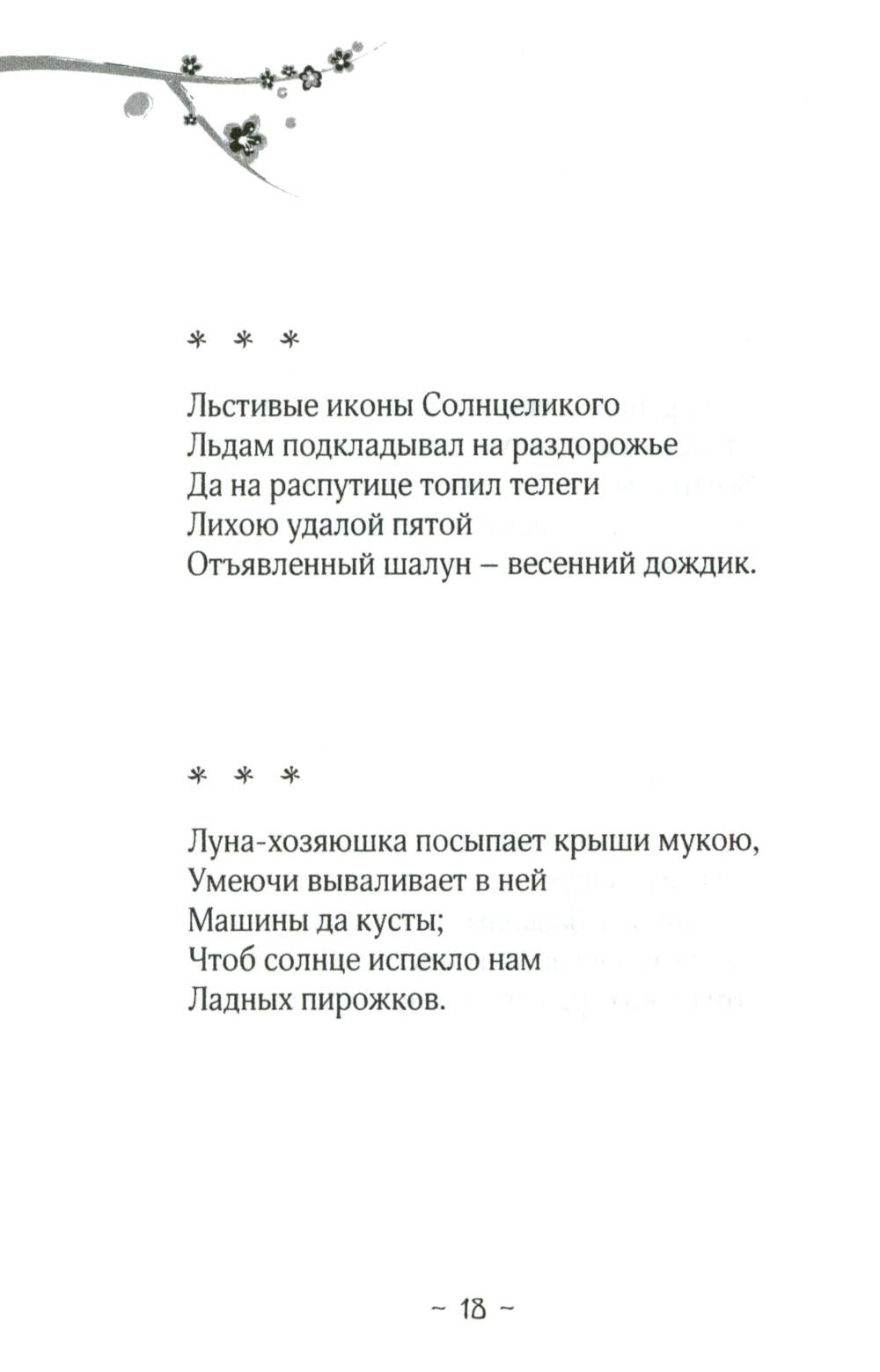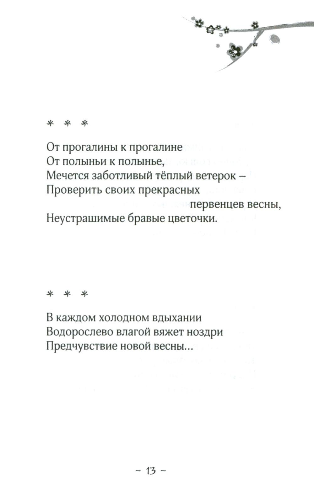 В поэзии автора причудливо переплетаются японские и европейские мотивы, а трогательные и проницательные образы погружают в мир многообразия смены времён года. В сборник вошли стихотворения, написанные за последние десять лет творчества.| Издательство | ИПО "У Никитских ворот" |
