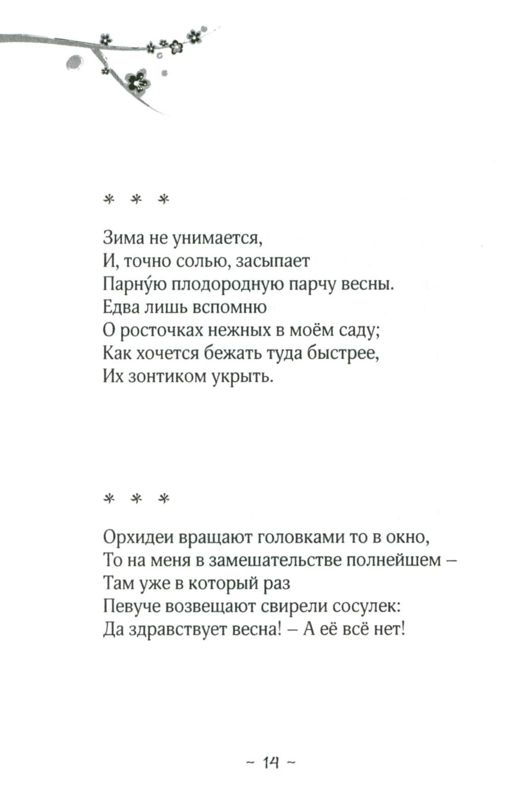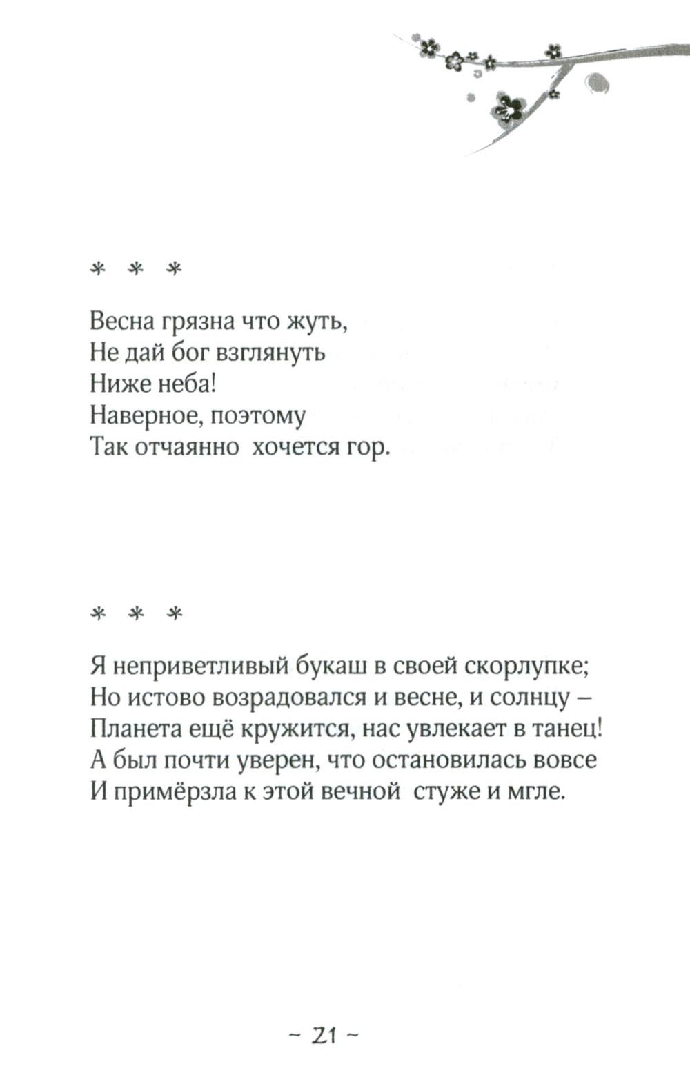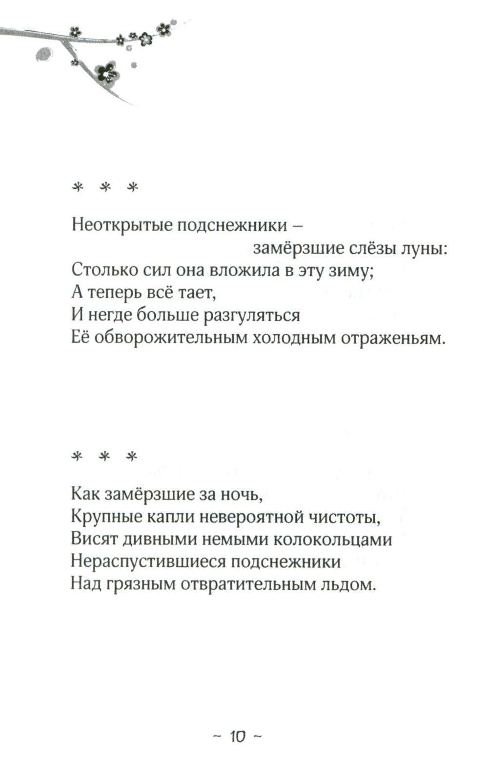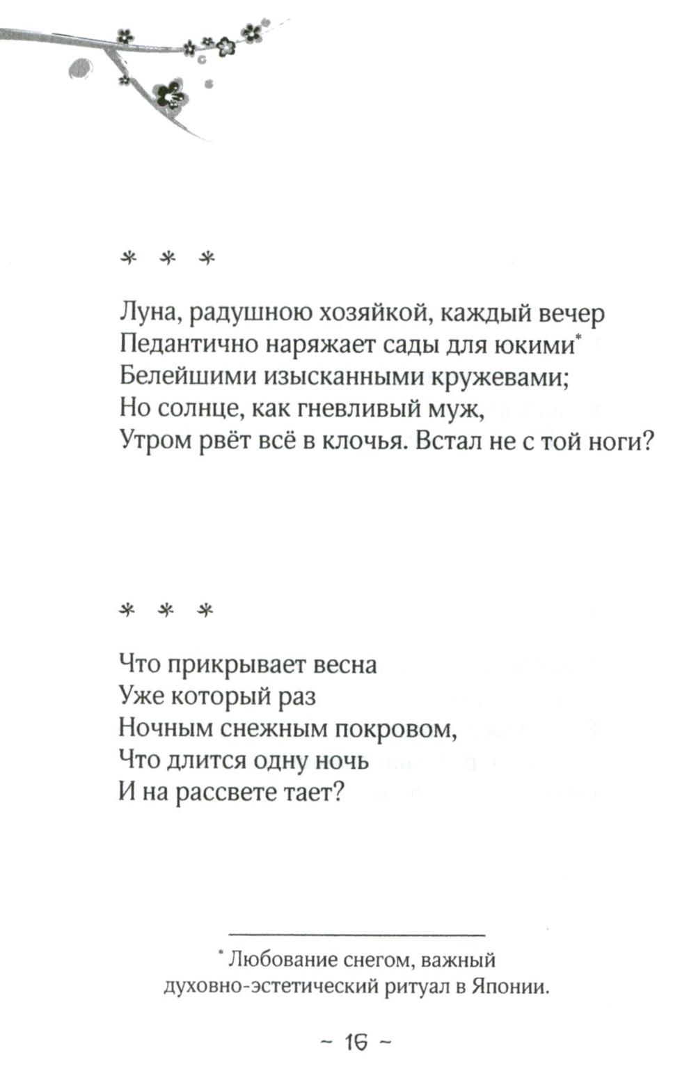 В поэзии автора причудливо переплетаются японские и европейские мотивы, а трогательные и проницательные образы погружают в мир многообразия смены времён года. В сборник вошли стихотворения, написанные за последние десять лет творчества.| Издательство | ИПО "У Никитских ворот" |