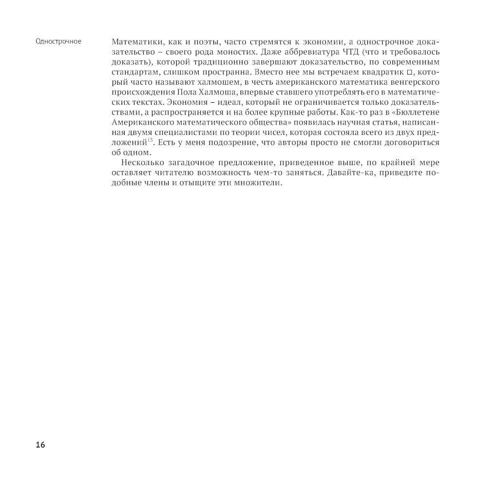 Эта книга предлагает взглянуть на математику с разных сторон, ознакомившись с 99 различными доказательствами одной и той же теоремы. В каждой главе приводятся решения в общем-то ничем не примечательного кубического уравнения разными стилями - разными с точки зрения исторического контекста, уровня формализации и богатства воображения. Вы встретите средневековую, топологическую, стихотворную, хроматическую, электро-статическую и психоделическую вариации; обнаружите неожиданные связи самых разных областей человеческого духа: от мистицизма до технологии и от архитектуры до языка жестов.