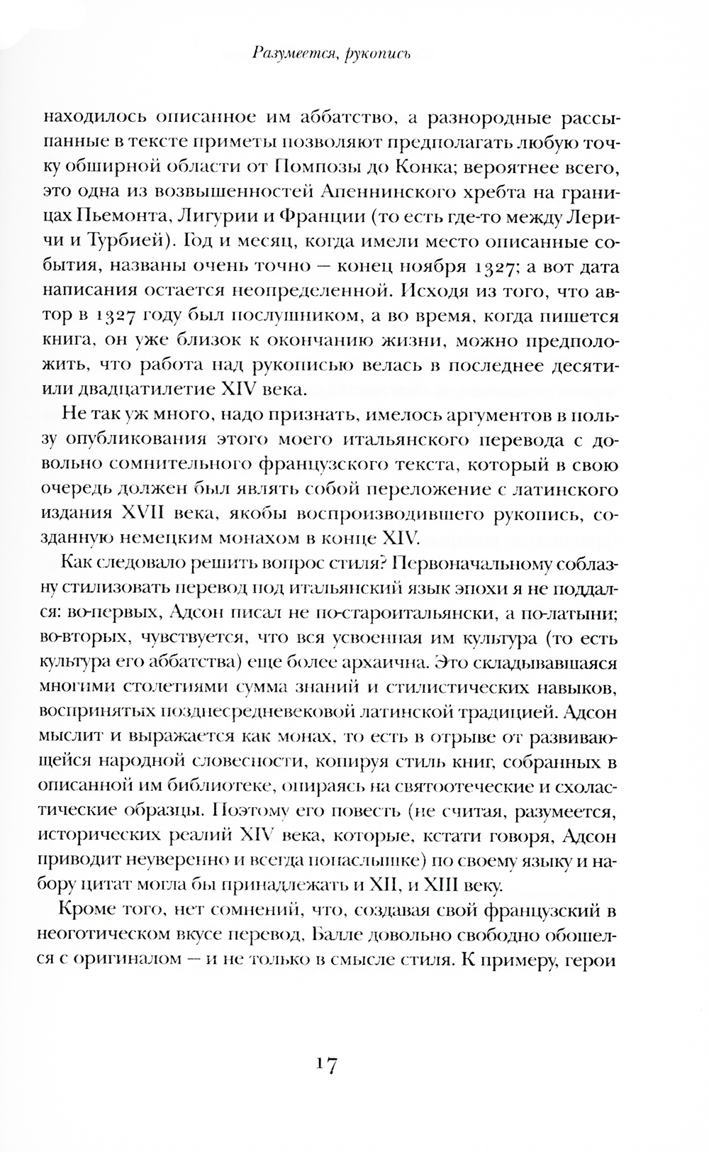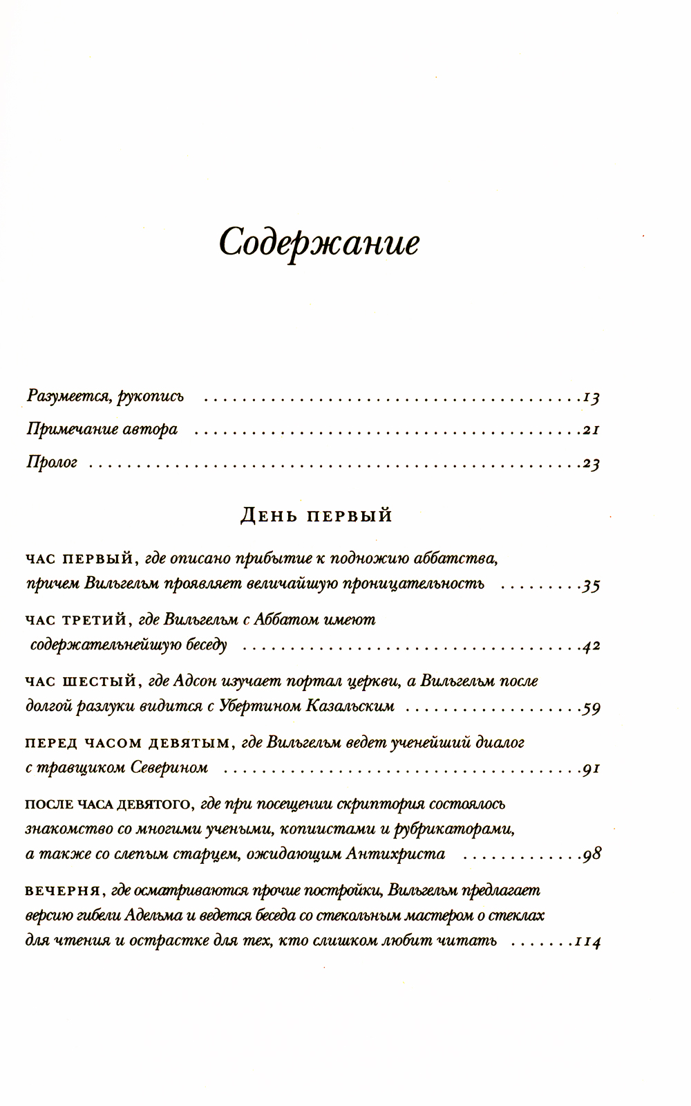 «Имя розы» - книга с загадкой. В начале XIV века, вскоре после того, как Данте сочинил «Божественную комедию», в сердце Европы, в бенедиктинском монастыре обнаруживаются убитые. Льется кровь, разверзаются сферы небес. Череда преступлений воспроизводит не английскую считалочку, а провозвестия Апокалипсиса. Сыщик, конечно, англичанин. Он напоминает Шерлока Холмса, а его юный ученик - доктора Ватсона. В жесткой конструкции детектива находится место и ярким фактам истории Средневековья, и перекличкам с историей XX века, и рассказам о религиозных конфликтах и бунтах, и трогательной повести о любви, и множеству новых загадок, которые мы, читатели, торопимся разрешить, но хитрый автор неизменно обыгрывает нас... Вплоть до парадоксального и жуткого финала.