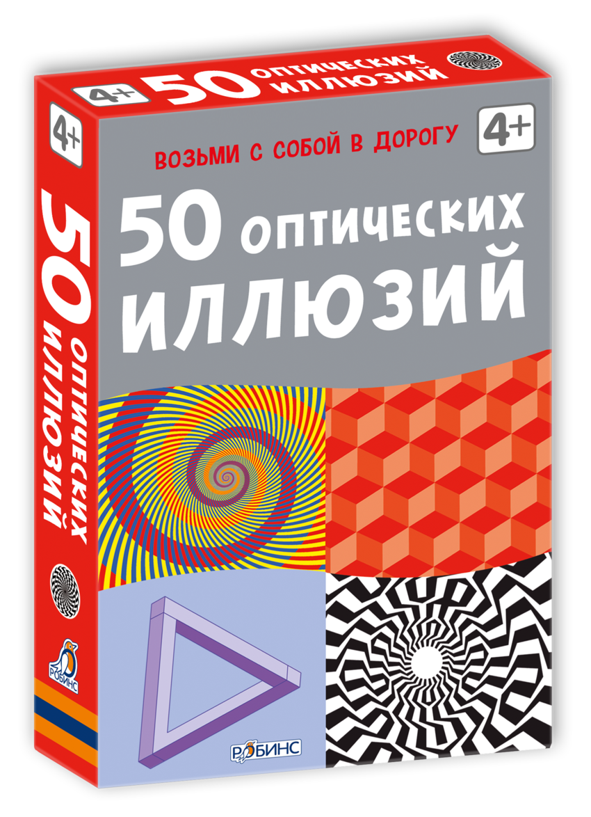 Внутри этой коробки ты найдешь 50 двусторонних карточек с удивительными оптическими иллюзиями и описаниями, как они работают. Погрузись в поразительный мир оптических иллюзий и научись их разоблачать. В наборе ты найдешь специальную карточку-разоблачитель со специальным отверстием и линейками, которые помогут вам понять в чем состоит иллюзия.