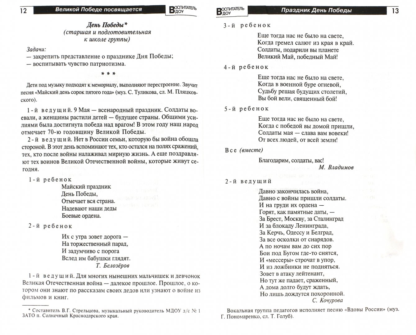Сборник издан к юбилею Великой Победы, в нем представлены различные сценарии проведения праздничных досугов, посвященных Дню защитника Отечества и Дню Победы - важнейшей формы патриотического воспитания детей дошкольного возраста. Для написания сценариев использовались стихотворения современных авторов и поэтов военных лет, а также фольклорный материал.