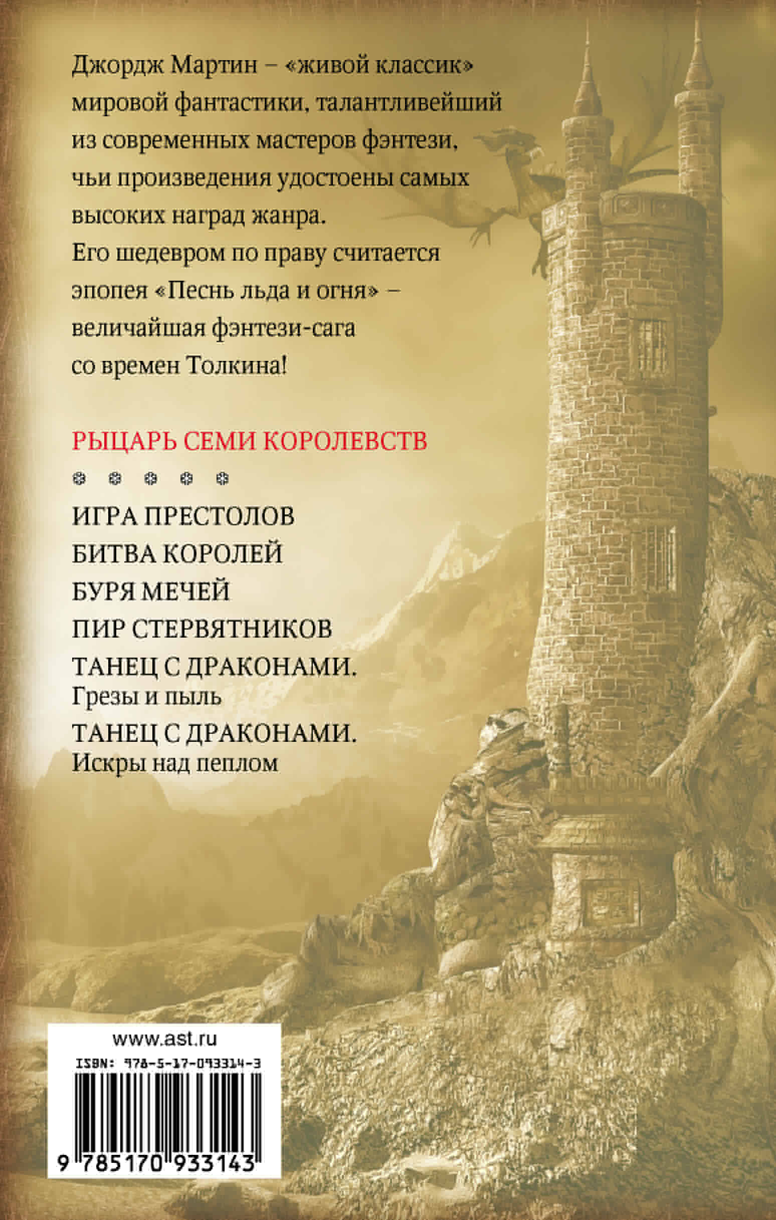 Еще сто лет - до смертоносного противостояния Старков, Баратеонов и Ланнистеров. Еще правит Вестеросом династия Таргариенов от крови драконов. Еще свежа память о битве за Железный трон Дейемона и Дейерона Таргариенов, еще стоят у городских стен эшафоты, на которых окончили жизнь проигравшие. А по вестеросским землям странствует молодой рыцарь Дункан со своим оруженосцем - десятилетним Эгом, - он жаждет славы, чести и приключений, и он получит их. И не только на ристалищах чести, но и в череде жестоких заговоров и опасных политических интриг, по-прежнему зреющих за замковыми стенами Семи Королевств…| Издательство | ИЗДАТЕЛЬСТВО "АСТ" |