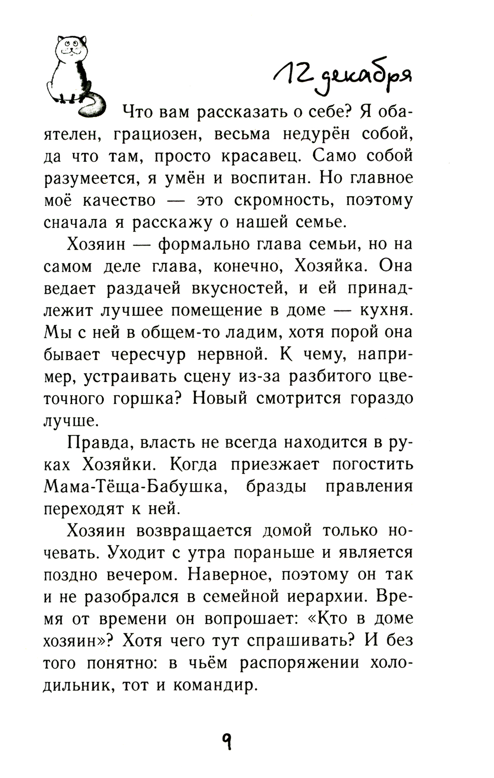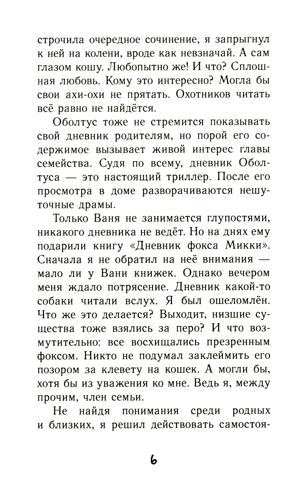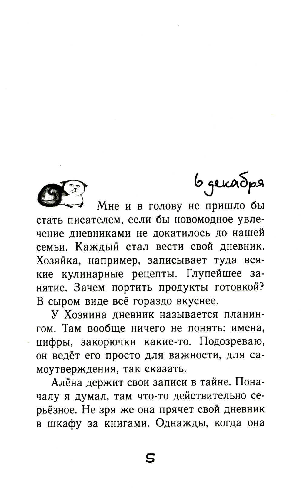 Издательство «Аквилегия-М» с гордостью представляет уникальный труд - дневник кота Барсика. Согласитесь, редкий случай, когда автором книги является представитель фауны. Переговоры по поводу данного издания были сложными и продолжительными, поскольку Барсик долго не мог решиться обнародовать заметки о своей личной жизни. Как бы то ни было, творение нашего «меньшего брата» перед вами. Однако Барсик просил отметить, что все неоспоримые достоинства дневника - исключительно его заслуга. А если читатель заметит в тексте какие-либо недочёты, то все претензии следует предъявлять Тамаре Крюковой. Мало ли что она переврала при переводе с кошачьего.