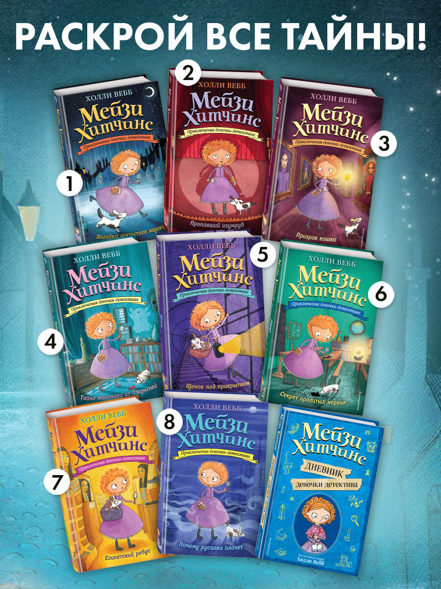 Конечно, никто не предложит Мейзи начать карьеру детектива с поиска похищенных бриллиантов (а хотелось бы!). Первое дело придётся найти самой - например, помочь знакомому мальчику, которого обвинили в краже денег, пропавших из… закрытого на ключ ящика! Здесь мы впервые встречаем Мейзи, девочку, мечтающую стать детективом. А сама Мейзи знакомится с пёсиком Эдди, который станет её верным помощником! Образцовый детектив для детей - тайны, которые расследует Мейзи Хитчинс, под силу разгадать ребёнку! В книге полно приключений, трогательных и смешных моментов и удивительных фактов из истории викторианского Лондона!