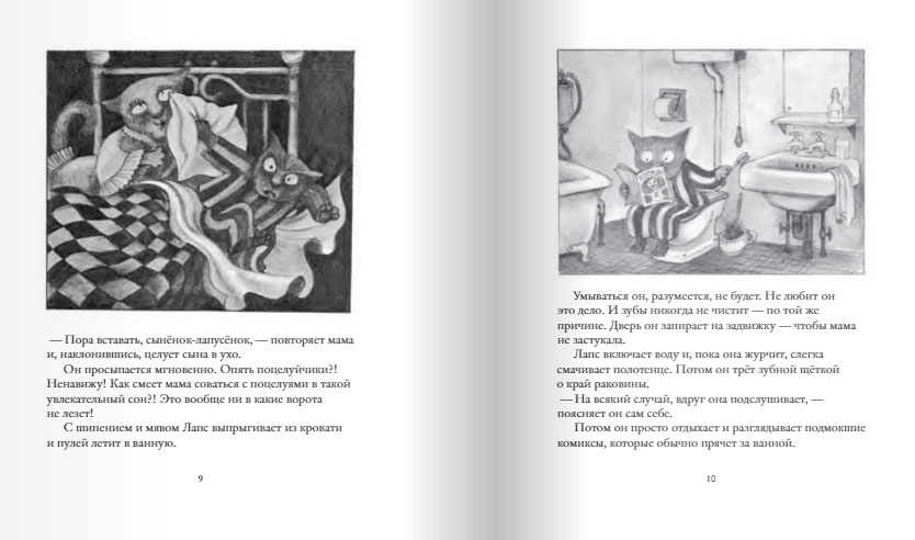 Бархотка Лапкина обожает своего ненаглядного сыночка и то и дело норовит чмокнуть его в щёчку. А что ненавидит Лапс Лапкин больше всего на свете? Правильно! Все эти СЛЮНИ-СОПЛИ-ПОЦЕЛУЙЧИКИ-ФУ-У-У-У… Особенно - на глазах у одноклассников! Да и вообще, он уже взрослый кот, которому не нужны мамины указания и нежности! Историю о семейном противостоянии, любви и поиске компромисса со свойственным ему парадоксальным юмором написал и нарисовал Томи Унгерер - классик современной иллюстрации, обладатель Национальной премии графических искусств Франции и высшей награды в области в детской литературы - премии Ганса Христиана Андерсена.