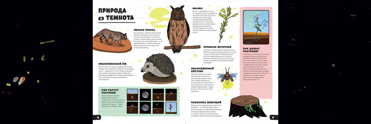 Думаете, с наступлением ночи жизнь на земле замирает? А вот и нет! С «Большой книгой темноты» ребенок совершит захватывающее путешествие во тьму: от ночных городских улиц до глубин океана.