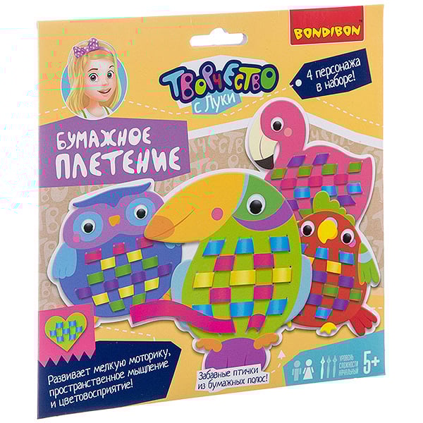 Плетение из бумаги разовьёт у ребёнка мелкую моторику, усидчивость и пространственное мышление. В наборах из серии "бумажное плетение" вы найдёте все необходимое, для создания четырёх весёлых персонажей.