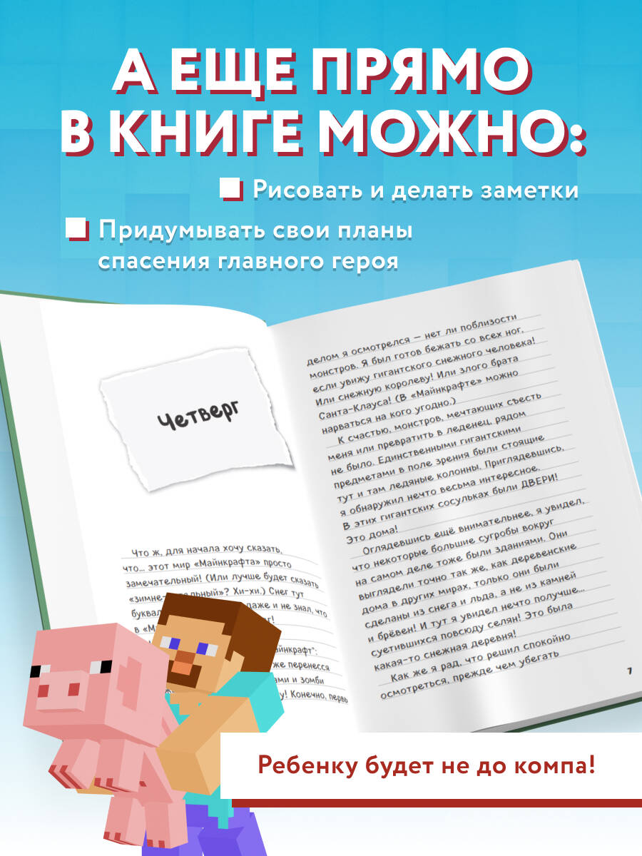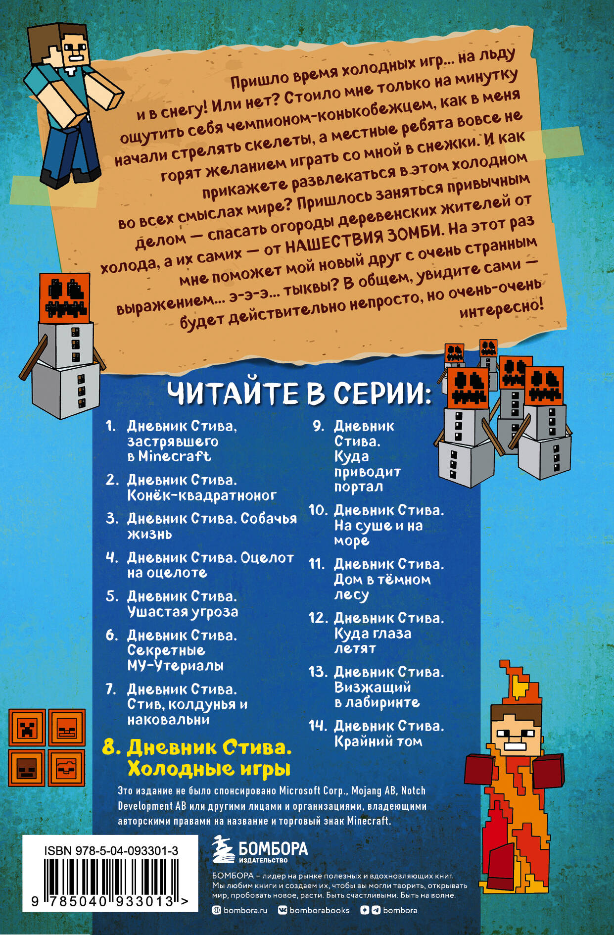 Приключения Стива продолжаются! Он попал в очередной мир в «Майнкрафте» - здесь очень холодно, вокруг - много снега и льда. Ему придётся спасать огороды местных жителей от холода, а самих жителей - от нашествия зомби! Приготовьтесь! Вас ждут тонны шуток, обалденные приключения, кролики и море веселья! Внутри книги есть пространство для творчества, где читатель может рисовать и помогать Стиву! Читайте в серии: 1. Дневник Стива, застрявшего в Minecraft 2. Дневник Стива. Конёк-квадратноног 3. Дневник Стива. Собачья жизнь 4. Дневник Стива. Оцелот на оцелоте 5. Дневник Стива. Ушастая угроза 6. Дневник Стива. Секретные МУ-Утериалы 7. Дневник Стива. Стив, колдунья и наковальни 8. Дневник Стива. Холодные игры 9. Дневник Стива. Куда приводит портал 10. Дневник Стива. На суше и на море 11. Дневник Стива. Дом в тёмном лесу 12. Дневник Стива. Куда глаза летят 13. Дневник Стива. Визжащий в лабиринте 14. Дневник Стива. Крайний том| Издательство | ООО "Издательство "Эксмо" |