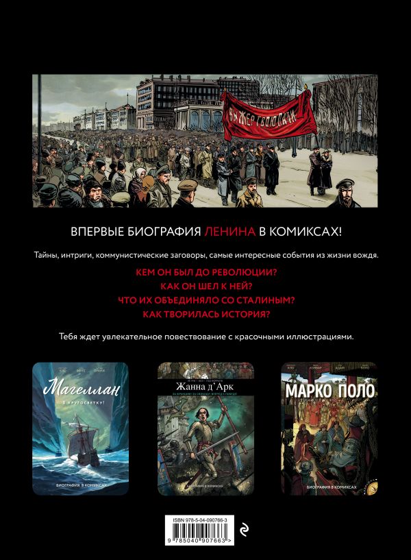 Впервые биография Ленина в комиксах! Тайны, интриги, коммунистические заговоры, самые интересные события из жизни вождя. Кем он был до революции? Как он шел к ней? Что их объединяло со Сталиным? Как творилась история? Тебя ждет увлекательное повествование с красочными иллюстрациями.