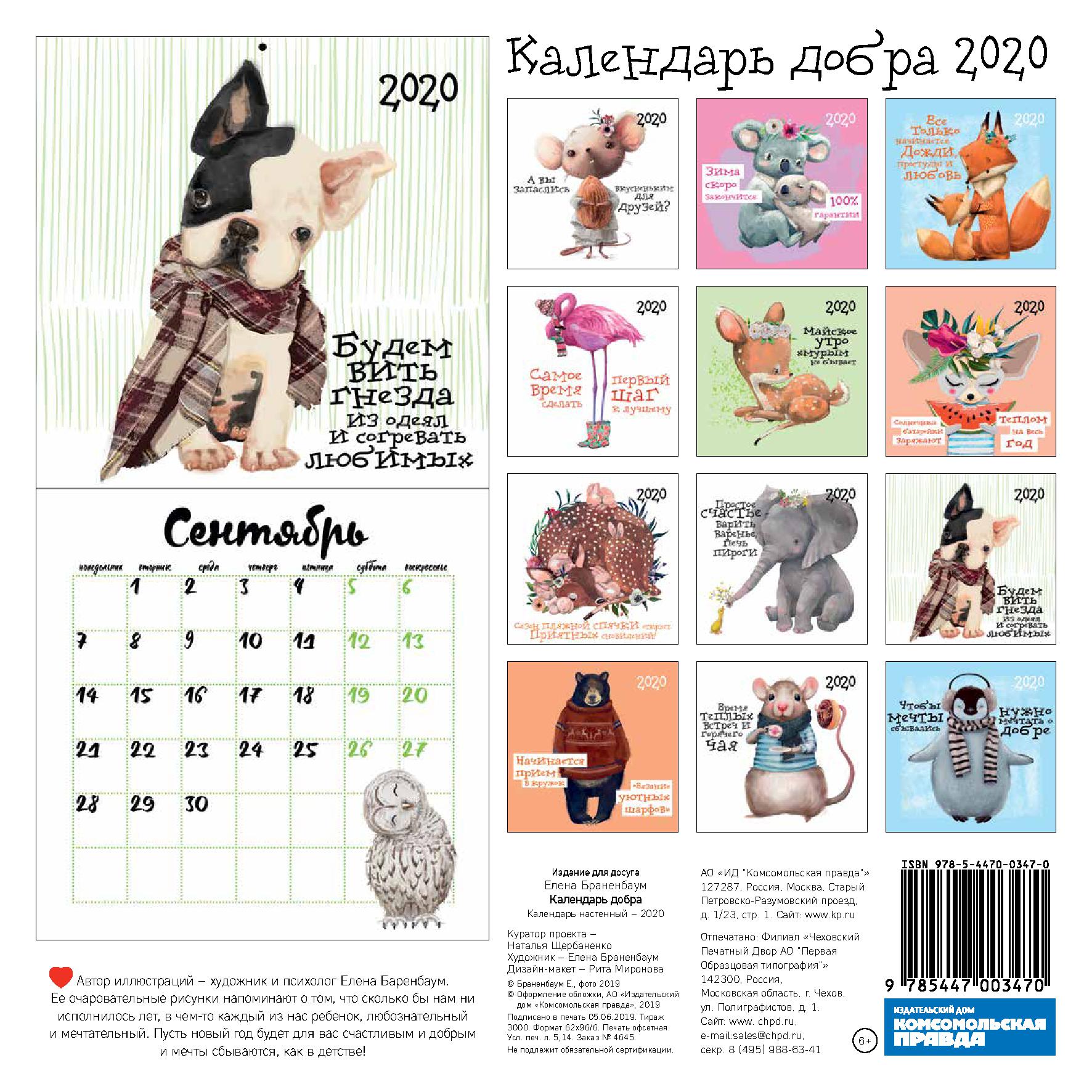 Календарь Добра: Автор иллюстраций - художник и психолог Елена Баренбаум. Ее очаровательные рисунки напоминают о том, что сколько бы нам ни исполнилось лет, в чем-то каждый из нас ребенок, любознательный и мечтательный. Пусть новый год будет для вас счастливым и добрым и все мечты сбываются, как в детстве!