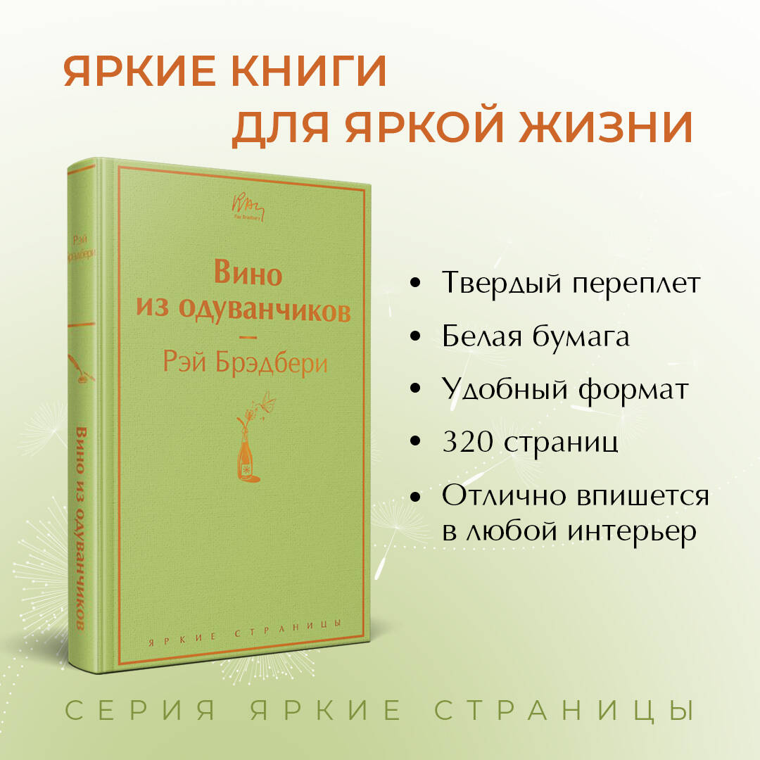 Яркое, фантастическое лето 1928 года: двенадцатилетний Дуглас Сполдинг ведет записи о событиях того лета, которые складываются в отдельные истории, гротескные искажения ординарных будней маленького городка, где живут Дуглас и его семья. Там все кажется не тем, чем является, а сила детского воображения создает новую реальность, которую не отличить от вымысла. Выросший из отдельных рассказов, филигранных в своей лиричности, роман «Вино из одуванчиков» - классическая хроника детства Рэя Брэдбери, окно в творческий мир писателя, создавшего такие шедевры мировой литературы, как «Марсианские хроники» и «451 градус по Фаренгейту». "Держи лето в ладони, налей лето в стакан, совсем крошечный, разумеется, ведь детям полагается малюсенький глоточек с горчинкой; пригуби лета из бокала - и в твоих жилах пременится время года."