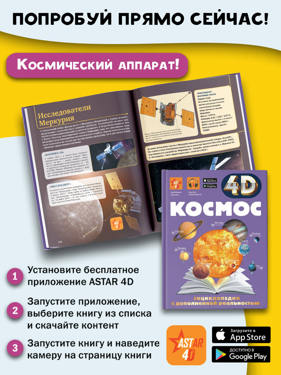 Эта 4D-энциклопедия с дополненной реальностью знакомит читателя с необъятным космосом. Здесь содержится исчерпывающая информация о том, как люди на протяжении тысячелетий стремились к звездам и постепенно познавали недостижимое, но такое манящее небо: строили обсерватории, составляли карты созвездий, изобретали летательные аппараты, запускали в космос человека, высаживались на Луну, выходили в открытое межпланетное космическое пространство... И все это для того, чтобы узнать как можно больше о планетах, Солнце, галактиках, астероидах и множестве других космических объектов. Сегодня вы можете детально и всесторонне изучить каждый из них прямо здесь - на страницах этой 4D-энциклопедии. Открывдля себя мир космоса в объемных "живых" картинках со звуковым сопровождением, вы словно окажетесь на борту космического корабля и воочию поразитесь величию и бесконечности вечного космоса.| Издательство | ИЗДАТЕЛЬСТВО "АСТ" |