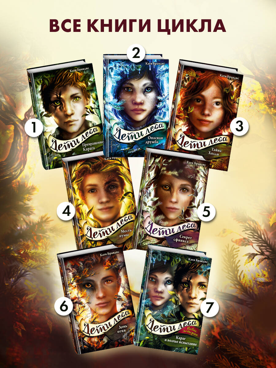 Великий день мести совсем близко. Энрю Миллинг, самый опасный оборотень Америки, собирает армию. Он готов заставить людей страдать. Он хочет отомстить за то, что те однажды жестоко поступили с его семьёй. Он не остановится ни перед чем, чтобы достичь своей цели. Миллинг собирается напасть даже на беззащитных детей. И только Караг и его друзья могут помешать его планам и спасти ни в чём не виновных жителей своего города и всей страны. Но получится ли у них противостоять целой армии оборотней? И какова цена победы? «День огня» - шестая книга в серии-бестселлере «Дети леса». Захватывающие и опасные приключения, остроумные шутки, рассказ об очень необычной школе и настоящей дружбе - не случайно книги Кати Брандис пользуются такой популярностью в разных странах. Престижный немецкий журнал Spiegel не раз признавал книги серии лучшими в подростковой литературе. Внутри вас ждут стильные черно-белые иллюстрации Клаудии Карлс.