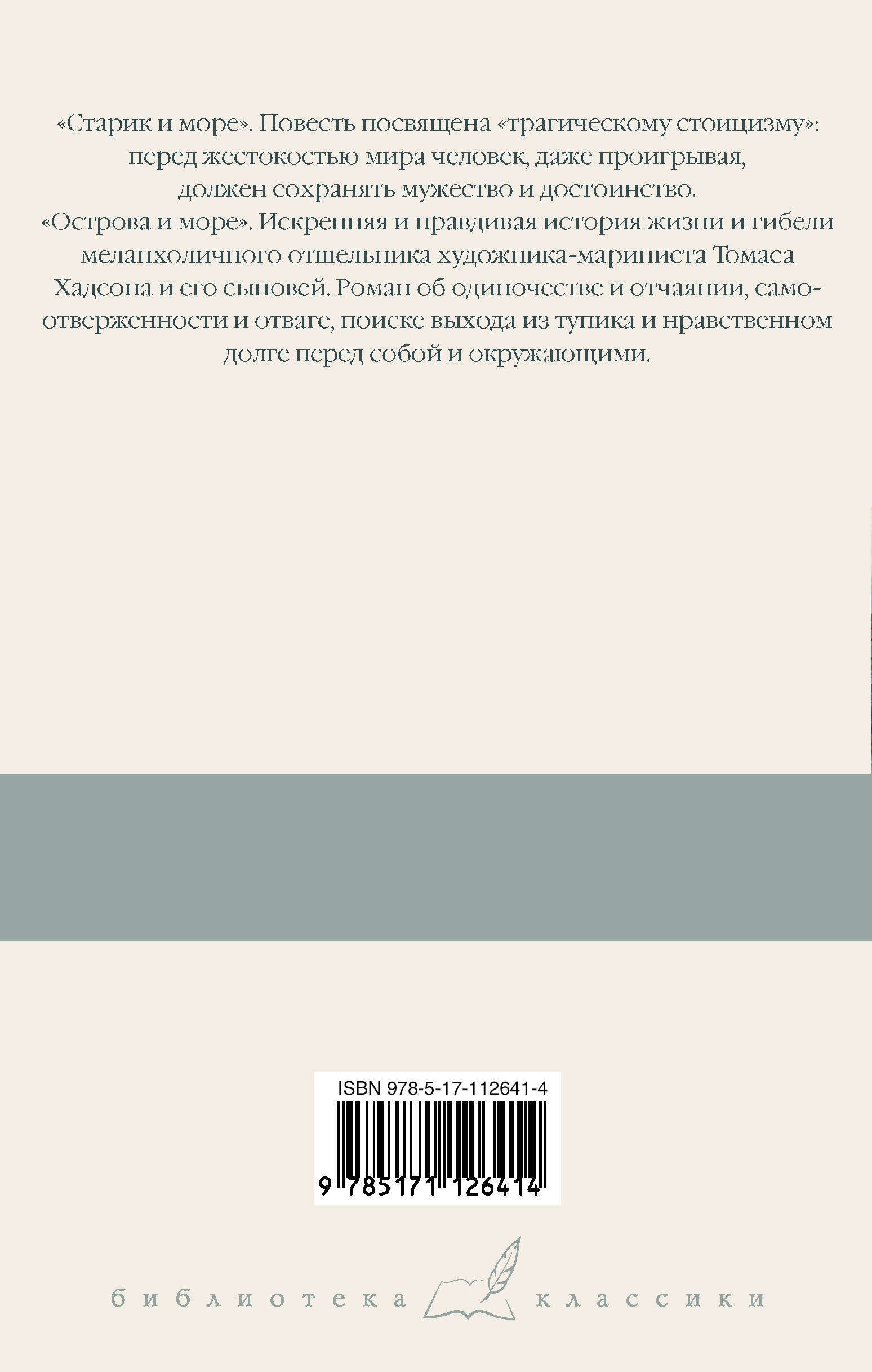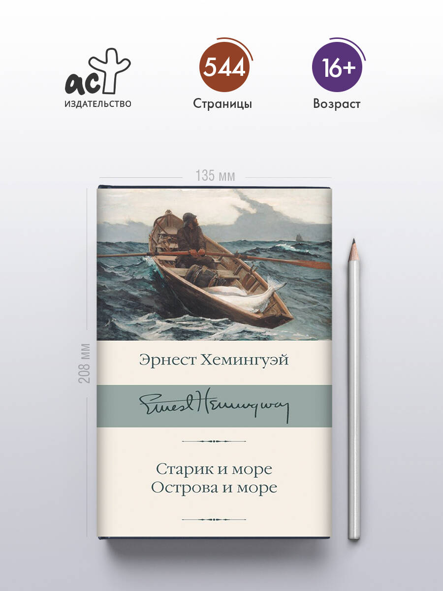 Повесть "Старик и море" - одно из самых известных и любимых читателями произведений Хемингуэя. Она принесла автору Пулитцеровскую премию, а также сыграла немаловажную роль в присуждении ему звания нобелевского лауреата. Это рассказ о "трагическом стоицизме" и мужестве, о том, как перед лицом безжалостной судьбы и одиночества человек, даже проигрывая, должен сохранять достоинство. "Острова и море" - искренняя и правдивая история жизни и гибели меланхоличного отшельника, художника-мариниста Томаса Хадсона и его сыновей. Роман об одиночестве и отчаянии, самоотверженности и отваге, поиске выхода из тупика и нравственном долге перед собой и окружающими.| Издательство | ИЗДАТЕЛЬСТВО "АСТ" |
