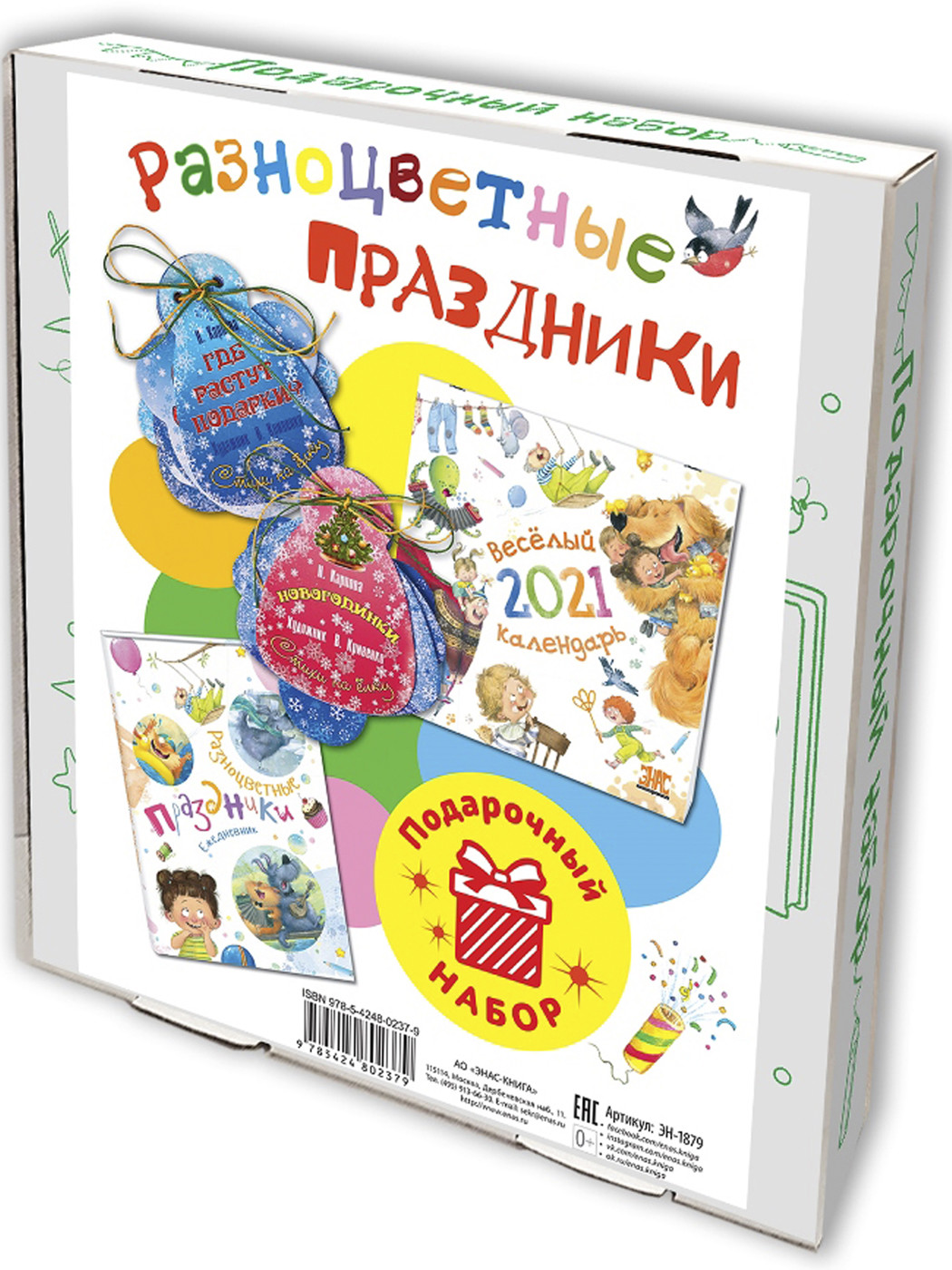 В подарочный набор включены: - "Веселый календарь 2021" (авторы Карпова Н., Валаханович К.; художник Ерёмина-Ношин Л.). Весёлый настенный календарь на 2021 год создан из чудесных детских стихов Натальи Карповой и Ксении Валаханович и очаровательных иллюстраций Любови Ерёминой-Ношин к книжкам: - «Про бабулечек - топотулечек, хлопотулечек, выпекулечек...»; - «Жили-были дети...»;- «Жизнь собачья»; - «Бывают папы разные»; - «Семейные секреты»; - «Если мама - осьминожка, если папа - осьминог...»; - «Как хорошо быть любимым и нужным!».
