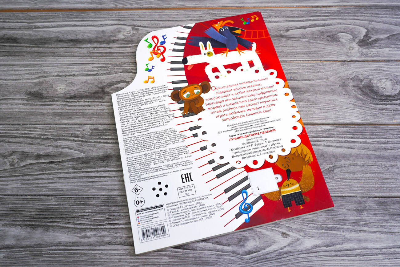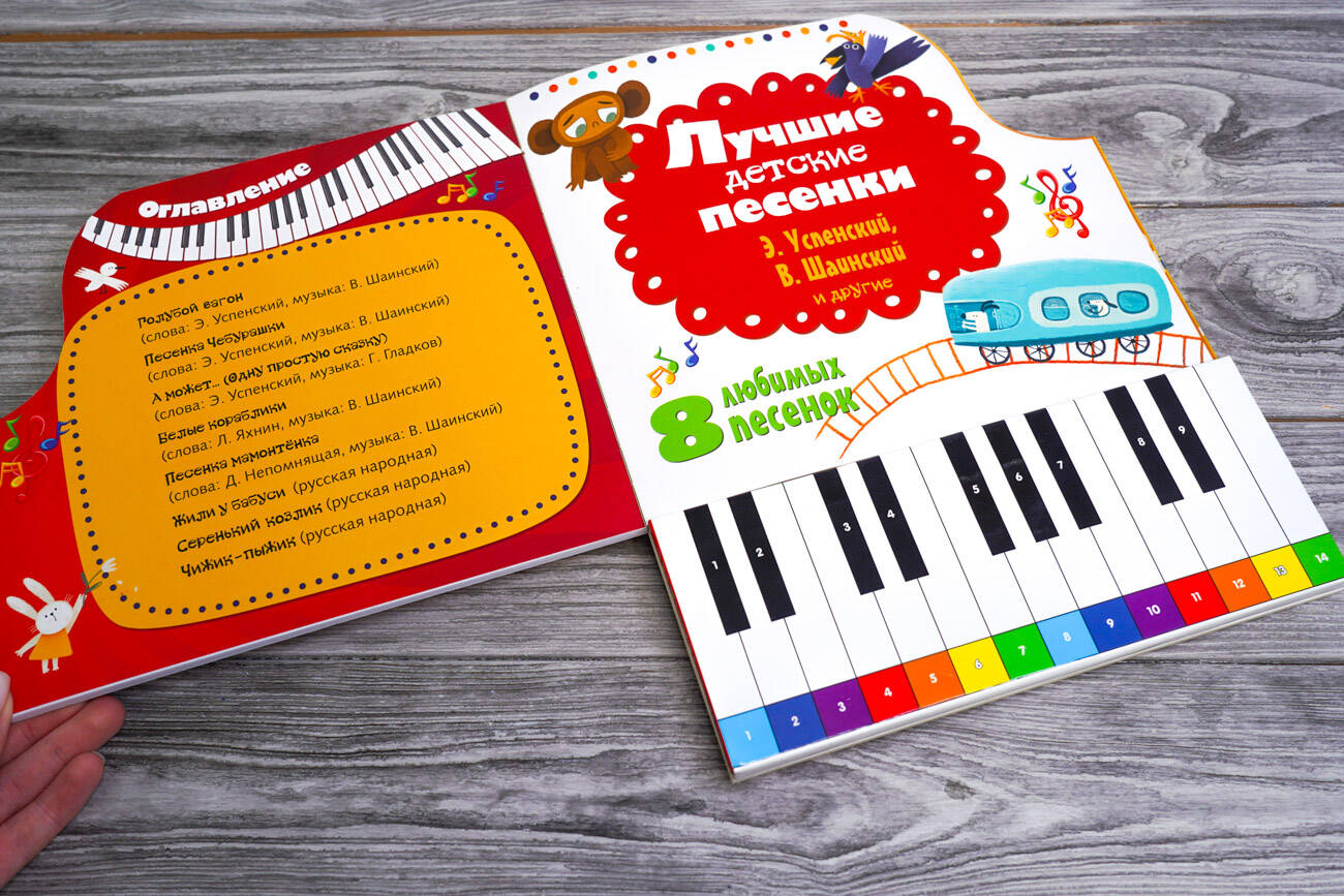Оригинальная книжка-пианино содержит восемь песенок, которые знает и любит каждый малыш! Благодаря инновационному цифровому модулю и специально адаптированным нотам ребёнок сам сможет научиться играть любимые мелодии и даже попробовать сочинить свои.