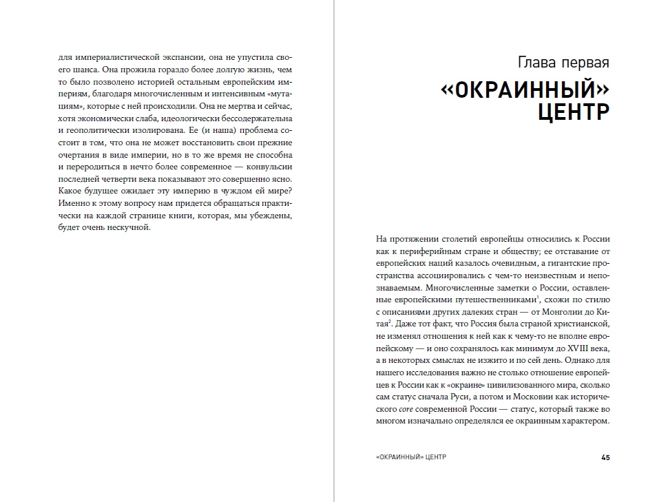 В этой книге историк Александр Абалов и экономист и публицист Владислав Иноземцев рассматривают прошлое, настоящее и будущее нашей страны с точки зрения эволюции ее имперской сущности. По мнению авторов, Россия являлась и является бесконечной империей: с самого зарождения и до наших дней, как бы ни называлась страна, она воспроизводила и воспроизводит имперские стратегии и тактики поведения, оставаясь угрозой для соседей и подавляя ростки федерализма и самоуправления внутри самой себя.