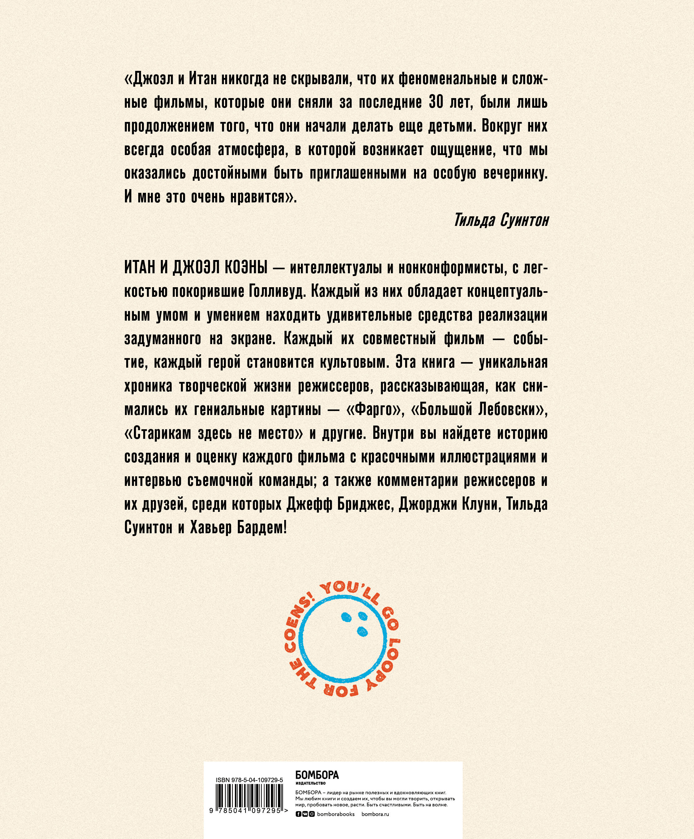 Итан и Джоэл Коэны - интеллектуалы и нонконформисты, с легкостью покорившие Голливуд. Каждый из них обладает концептуальным умом и умением находить удивительные средства реализации задуманного на экране. Каждый их совместный фильм - событие, каждый герой становится культовым. Как они пришли в кинематограф? Почему снимают фильмы вместе? Какое распределение ролей в этом оскароносном дуэте? Действительно ли главной темой кинематографа братьев Коэн является страх перемен? На этот вопрос сходу не ответят даже они. Но автор этой книги все же даст вам ответ. Эта книга - уникальная хроника творческой жизни режиссеров, рассказывающая, как снимались их гениальные фильмы - "Фарго", "Большой Лебовски", "Старикам здесь не место" и другие. Помимо истории создания фильмов внутри содержится много архивного материала со съемок, комментарии режиссеров и забавные истории от актеров и съемочной группы. Отличный подарок для всех поклонников Коэнов и ценителей хорошего кино!