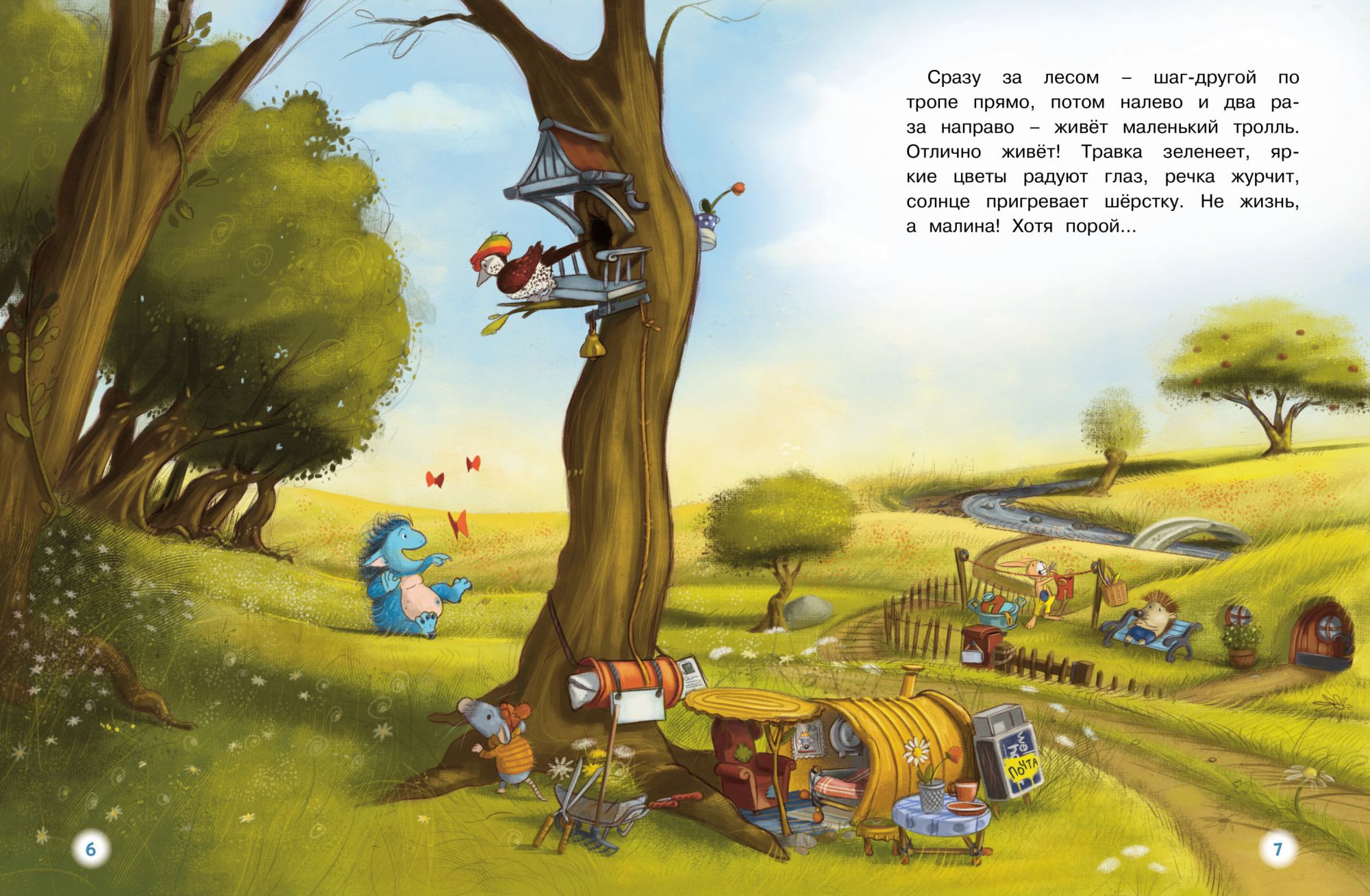 Где-то за лесом - немного прямо, потом налево и ещё два раза направо - живёт маленький тролль. И всё у него прекрасно! Солнышко пригревает, птички весело щебечут, вокруг зеленеет травка и распускаются цветы. И живётся ему нескучно! Маленький тролль вместе с друзьями устраивает пикники, уплетает яблочное пюре, играет в мяч, а ещё пускает кораблики в ручейке и строит шалаш. Но иногда он превращается в… бушующего ГРОМ-ТРОЛЛЯ!