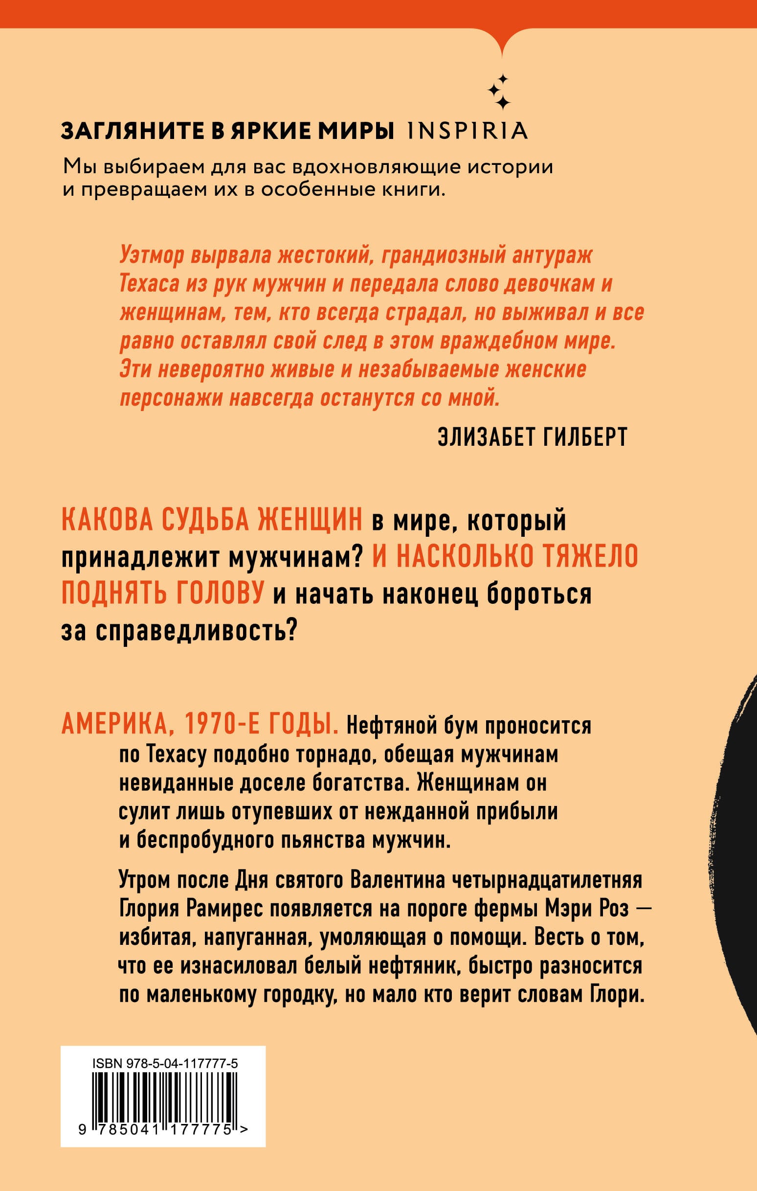 Действие романа разворачивается в 70-е, в маленьком городке Одесса, штат Техас. Четырнадцатилетняя Глория Рамирез подверглась жестокому изнасилованию. «Валентайн» повествует о том, как на это происшествие отреагировали жители города, а в особенности - женщины. Женщины, угнетенные патриархатом, женщины, которые страдали от норм религии и политики, женщины, которых считали второсортными членами общества. Но то, что случилось с Глорией, заставит их переосмыслить свое положение и наконец начать бороться за справедливость. "Однако - и в этом заключена уникальность Элизабет Уэтмор - из самого что ни на есть «повесточного», утрировано актуального сора она ухитряется прорастить нечто поразительно естественное, живое и прекрасное. То, что у других свелось бы к банальному и прямолинейному идеологическому императиву, в ее исполнении обрастает полутонами, наливается сложностью, щемящей детальностью, безусловной достоверностью и глубиной. Актуальность романа Уэтмор - результат не осознанного желания встроиться в тренд, но редкого и потому особо ценного совпадения социального запроса и живой персональной обеспокоенности. И именно эта способность непосредственно переживать всеобщее как личное, откликаться собственной горячей эмоцией на глобальные веяния и позволяет поставить «Валентайн» в один ряд с лучшими образцами великого американского романа". Галина Юзефович «Захватывающий дебют... "Валентайн" - это история о том, как женщины - особенно женщины без образования и денег - выживают в мире мужской жестокости. Это история их жизни в захолустном нефтяном городке в середине 1970-х, которую Уэтмор, кажется, знает настолько глубоко, что становится больно... Тщательно продуманный и эмоционально захватывающий роман». - Washington Post «Памятник своего рода милосердию и истинной твердости духа». - Entertainment Weekly «Яростный и сложный, "Валентайн" - это роман моральной актуальности и захватывающей дух прозы. Это само определение потрясающего дебюта». - Энн Патчетт «Мне не верится, что Элизабет Уэтмор начинающая писательница. Как у нее получилось ворваться на сцену с такой мощью и мастерством? "Валентайн" блестящий, острый, напряженный и разрушительный. Уэтмор вырвала жестокий, грандиозный Западный Техас из рук мужчин и передала слово девочкам и женщинам, тем, кто всегда страдал, выживал и все равно оставлял свой след в этом враждебном мире. Эти невероятно живые и незабываемые женские персонажи навсегда останутся со мной». - Элизабет Гилберт| Издательство | ООО "Издательство "Эксмо" |