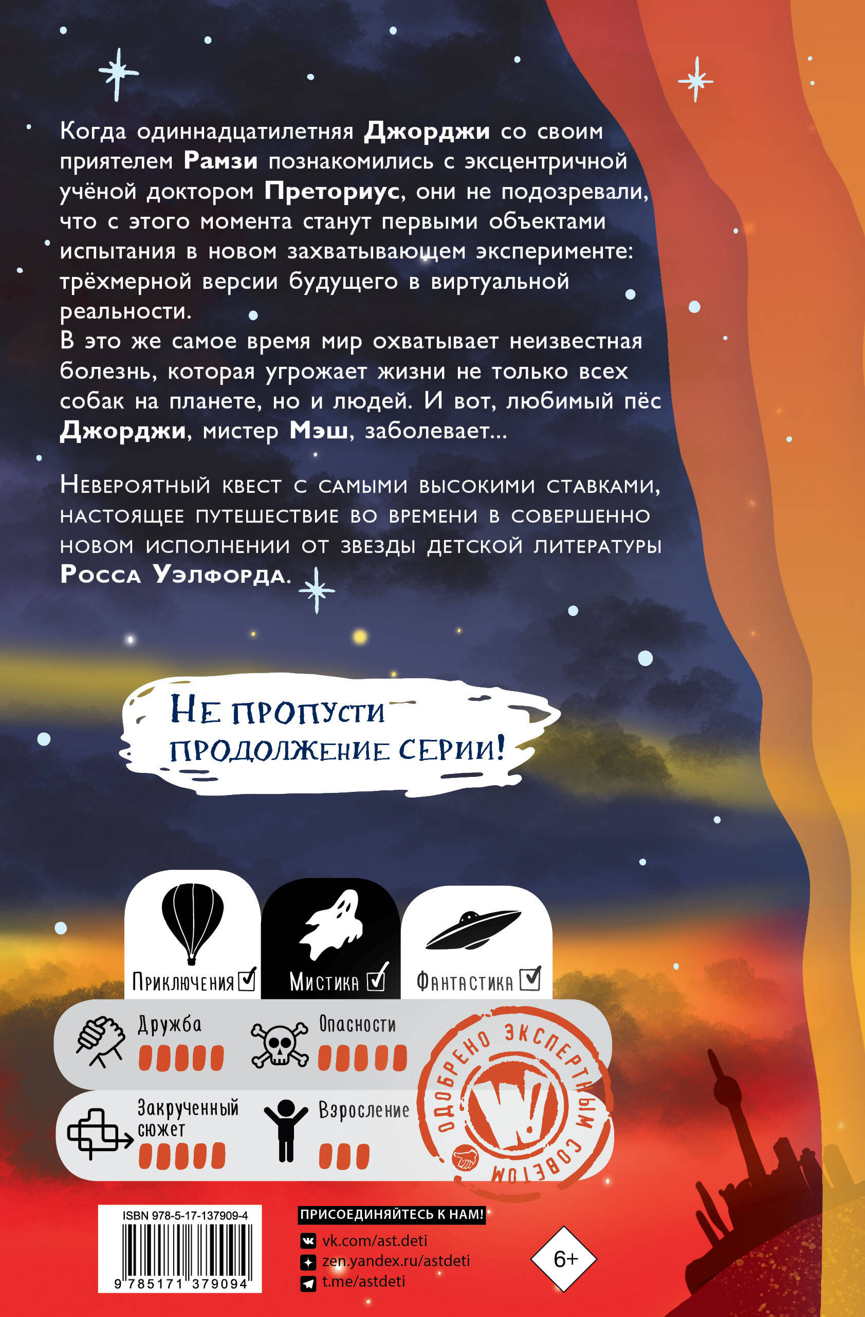 Подружившись с эксцентричной учёной на пенсии, одиннадцатилетняя Джорджи и её приятель Рамзи становятся объектами испытаний в новом захватывающем эксперименте: создании трёхмерной версии будущего в виртуальной реальности. В это же самое время становится известно, что каждой собаке в мире угрожает смертельная болезнь. Спустя несколько дней вирус становится опасным и для людей. А тут любимый пёс Джорджи, мистер Мэш, заболевает. Но это только начало истории... Росс Уэлфорд - звезда современной фантастики для детей. Его книги отмечены такими наградами, как The Awesome Book Award, и занимают первые строчки рейтингов Amazon. "Собака, которая спасла мир" - это необыкновенный квест с самыми высокими ставками, где путешествие во времени сильно отличается от того, каким вы его знаете.